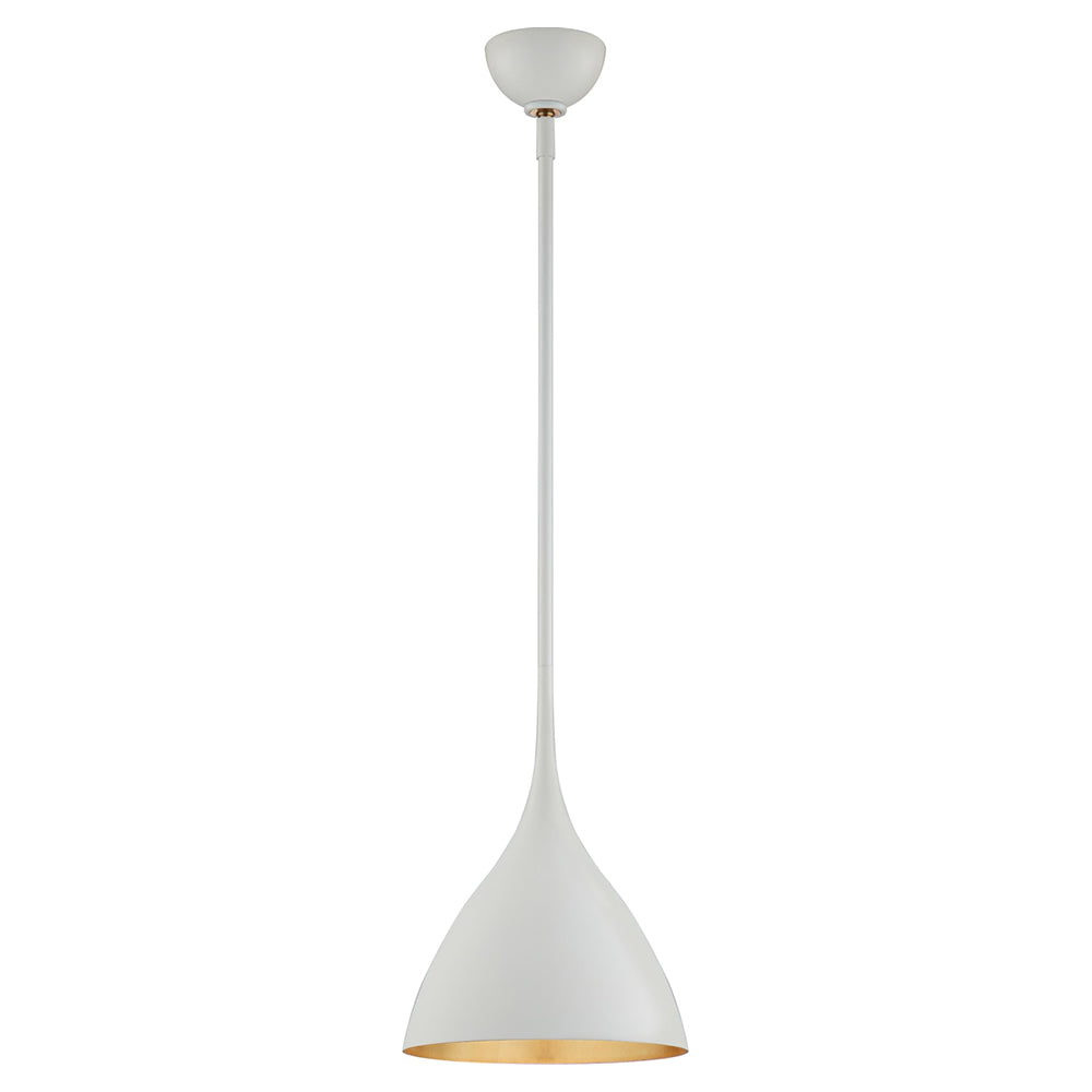 The small Agnes ceiling light has a minimalist, bell-shaped design and a sleek finish. It is a perfect addition to smaller contemporary spaces. The contrasting interior and exterior is a stylish touch that provides additional character when the pendant is illuminated.
