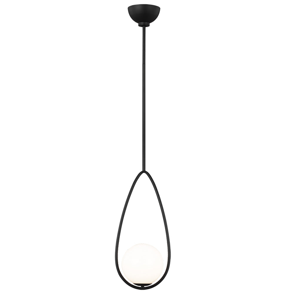 Bring a boost of brightness and a touch of contemporary style to any arrangement with this Aerin Galassia One Light Pendant. The Galassia collection by Aerin for Visual Comfort Studio brings a swanlike elegance to chandelier design with sweeping lines and a slender silhouette. This modern Aerin Galassia One Light Pendant makes a brilliant statement with understated poise and is perfect for hanging above your dining table or coffee table. The Aerin Galassia One Light Pendant in burnished brass or midnight black balances glass globes on an elongated frame, which gives it a contemporary look. The white or black glass casts a soft, welcoming glow, while the elongated frame works particularly well in large, high-ceiling rooms. This Aerin Galassia One Light Pendant features a sleek, on-trend look that stands out wherever it hangs — over your kitchen island or dining room table, or in your stairway.