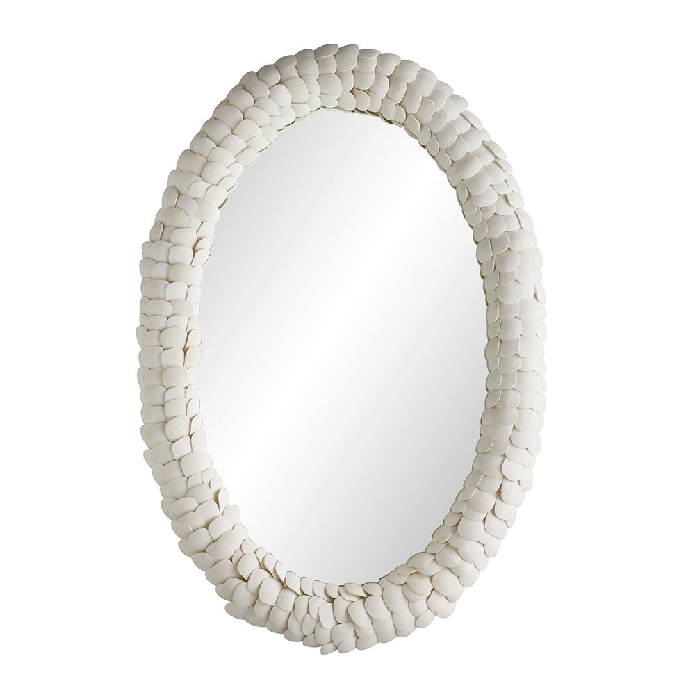 An exclusive addition to any interior, the Arteriors Lumis Mirror is a work of art that emanates sophistication. The Arteriors design offers a sleek, white frame, giving it a contemporary feel while adding a subtle, timeless elegance. The Arteriors Lumis Mirror is crafted with meticulous attention to detail, it captures light from any angle, livening up the space with a bright, luminous shine. The Arteriors Lumis Mirror is perfect for modern-chic decor, adding a refined and luxurious touch to any room.