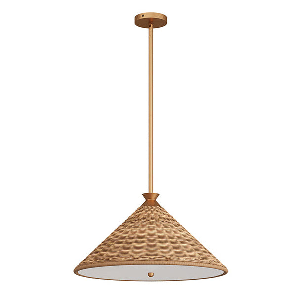 Trying to switch up your style in the master suite? Think upwards! You can save space and add a distinctive beauty to your bedside with a couple of pleasant pendants. Hang this sleek and modern Arteriors Terrace Pendant in your space to add some ambiance and style. A continuation of the terrace family, this Arteriors Terrace Pendant is made up of natural, handwoven rattan that brings a caribbean sophistication feel to the piece. With accents crafted of gold steel finished iron, the contrast points accentuate the whimsical silhouette. Finish will vary. This rattan Arteriors Terrace Pendant light is a great way to add bohemian charm and warmth to your home and is perfectly adaptable to any ceiling height from your bedroom, kitchen island, dining table, or entry. We love that this Arteriors Terrace Pendant works well with a dimmer switch to effortlessly take you from day to night.