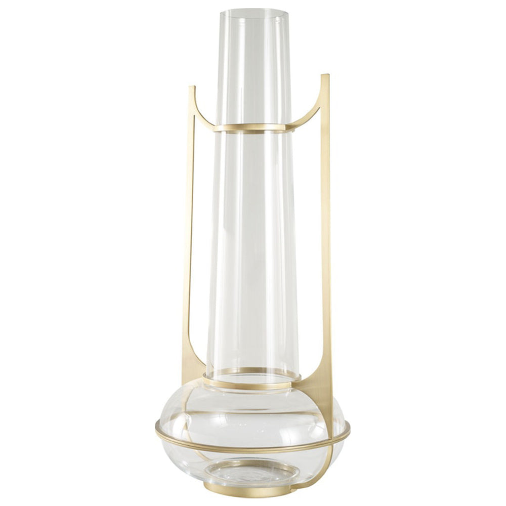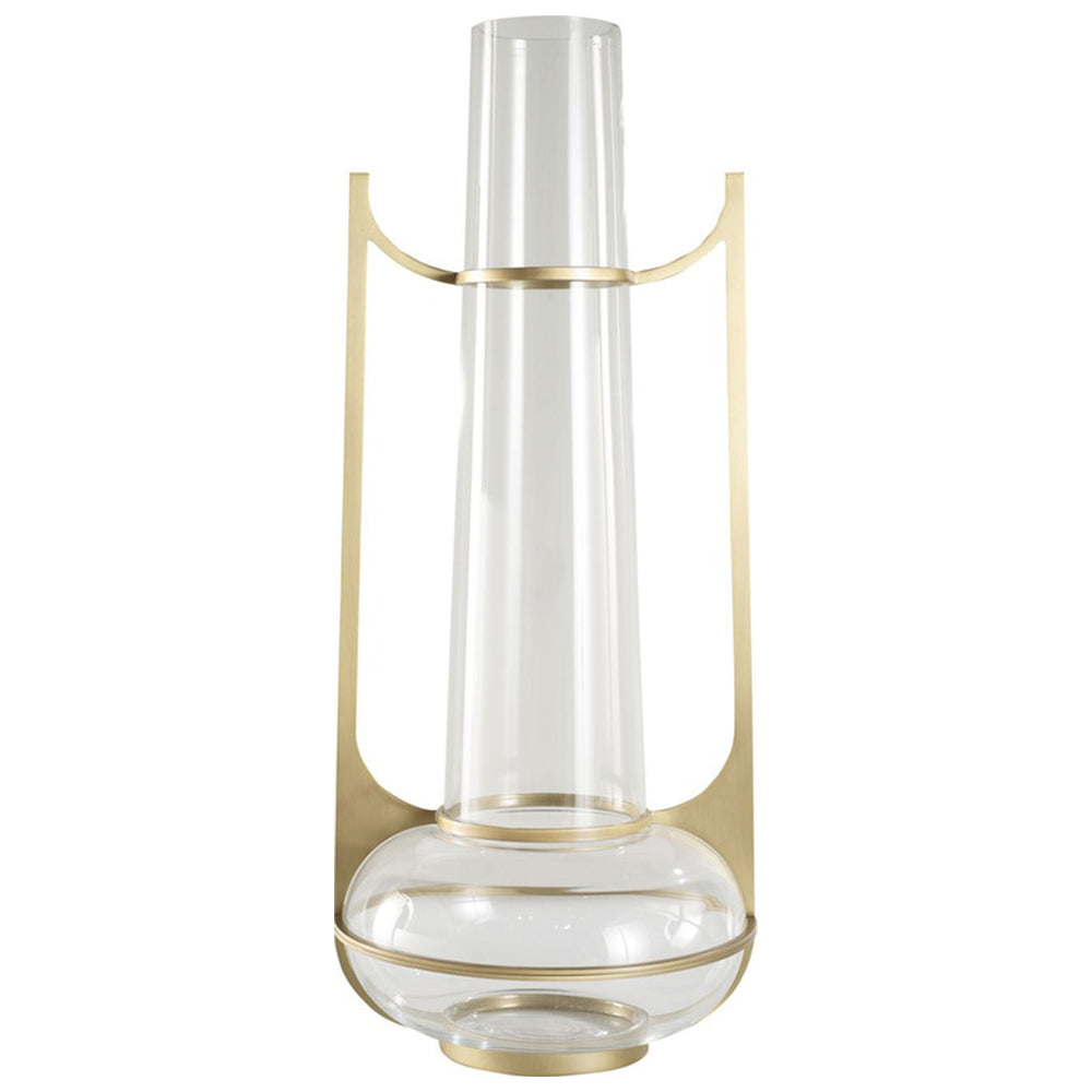 Standard Finish(es): Clear Glass with Satin Brass, Smoked Glass with Satin Nickel. Glass Jar with brass hardware frame.