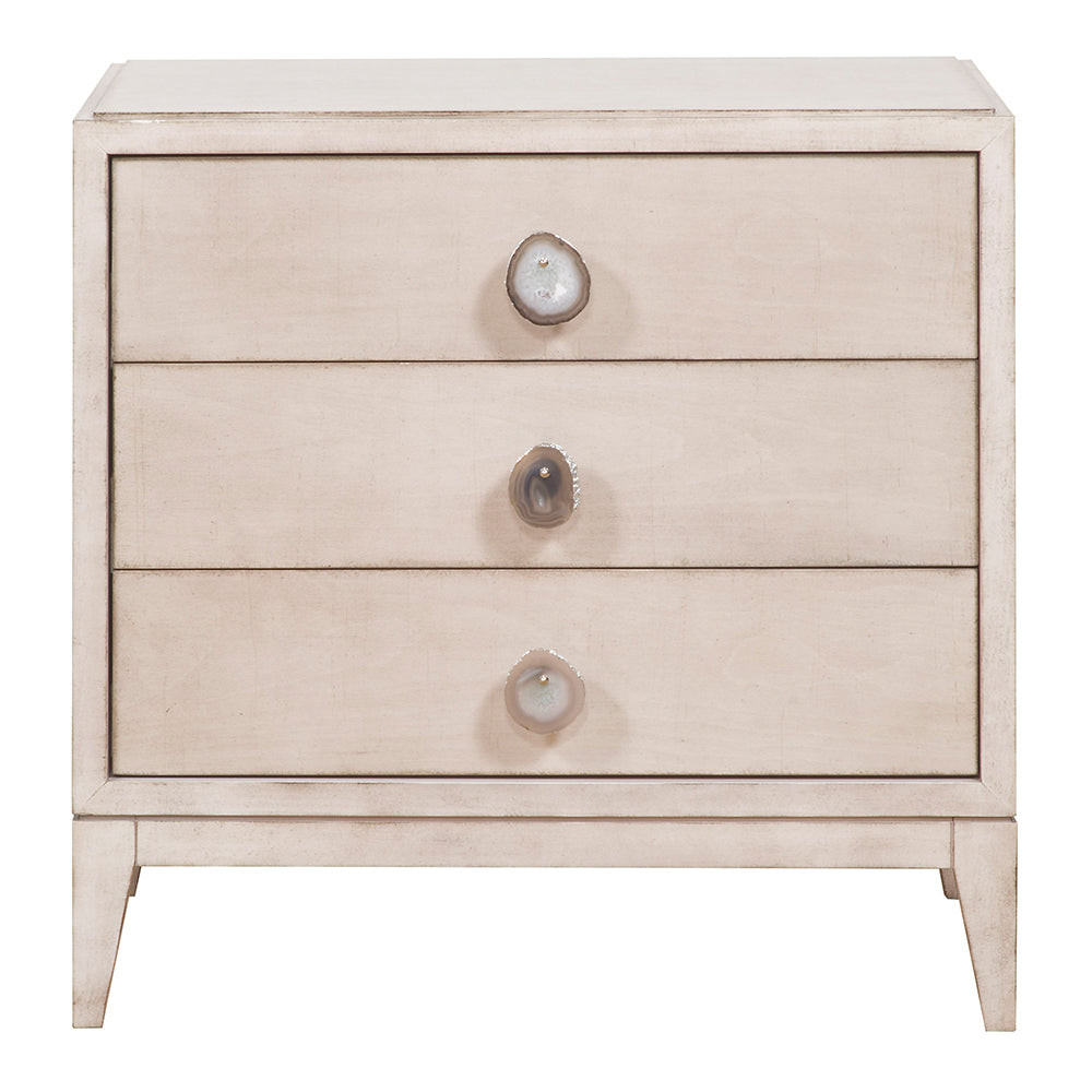 Get the perfect Cremins Nightstand by Vanguard furniture. Nightstands are available in array of fabric options. The material is strong and this is confirmed. The product is warranted to be free of defects in material. Dimensions are shown in our page. You can check them near the description. This nightstand will be a perfect fit for your bedroom. The Cremins Nightstand by Vanguard furniture is in beige color. It has clean face molding and ripple agate pull. It has three drawers where you can put things that you want. Every drawer has a beautiful part which helps you to open it. You can put personal little things inside it and different accessories. You can put a small vase of flowers, decorative things, books or a lamp-shade on it. Your bedroom will change a lot. This wonderful nightstand guarantees a nice view. If you see the photo for a long time you will understand that it is incomparable in details. While you will be in your bedroom, something beautiful is going to attract you. What else except the Cremins Nightstand by Vanguard furniture? So, all you need is this wonderful and special nightstand. Next time when you will be in our website for a new nightstand you will not think twice. Hurry up! This nightstand is waiting for you!