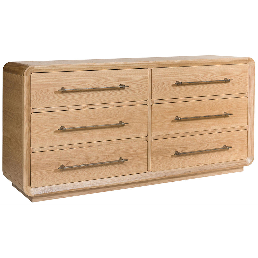 Dressers aren't just for keeping your wardrobe tucked away – they also add style to your restful retreat, offer a spot to stage a display that's all your own, or even work double-time as a vanity when paired with a mirror. This 6-drawer Vanguard Form Dresser elevates your bedroom with a sleek, modern design and storage. It's crafted from engineered wood with a low, wide silhouette. Discover this Vanguard Form Dresser in Wirebrushed Oak with Wheat finish. The six drawers feature metal slide glides and give you room for organizing and storing your wardrobe. You can also use this Vanguard Form Dresser to store diapers, toys, and other baby items. Round out your bedroom to look perfect need more storage in your room, along with a space for your jewelry and beauty products? This Vanguard Form Dresser is just the right height, and the top surface is ideal.Beautifully blend the hues of natural living with the edginess of your modern lifestyle.
