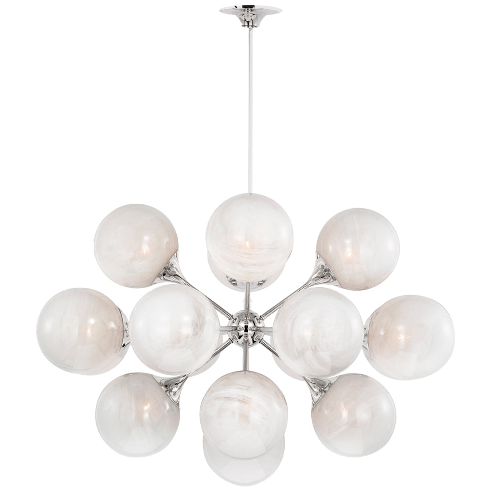 The AERIN Cristol 40" Chandelier exudes timeless elegance. The AERIN Cristol 40" Chandelier is available in hand-rubbed antique brass or polished nickel finish, this chandelier adds a touch of luxury to any space. With its intricate design and impeccable craftsmanship, it is sure to impress. Elevate your home with this sophisticated and exclusive AERIN Cristol 40" Chandelier.