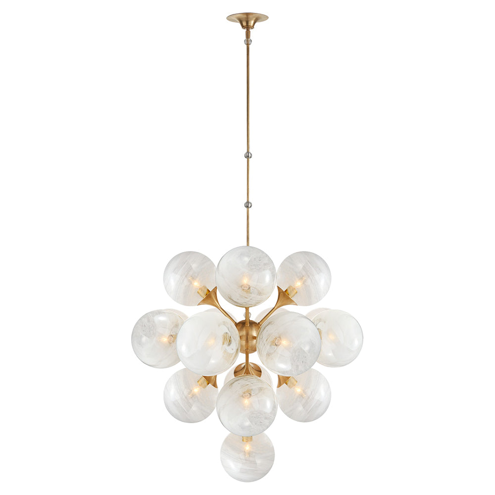 The Cristol Pendant brings old world glamour and a contemporary spin to an interior. Ideal for larger rooms, this piece illuminates every corner from its three tiers of globe lighting.This 10 light Tiered Chandelier from the AERIN Cristol collection will enhance your home with a perfect mix of form and function.