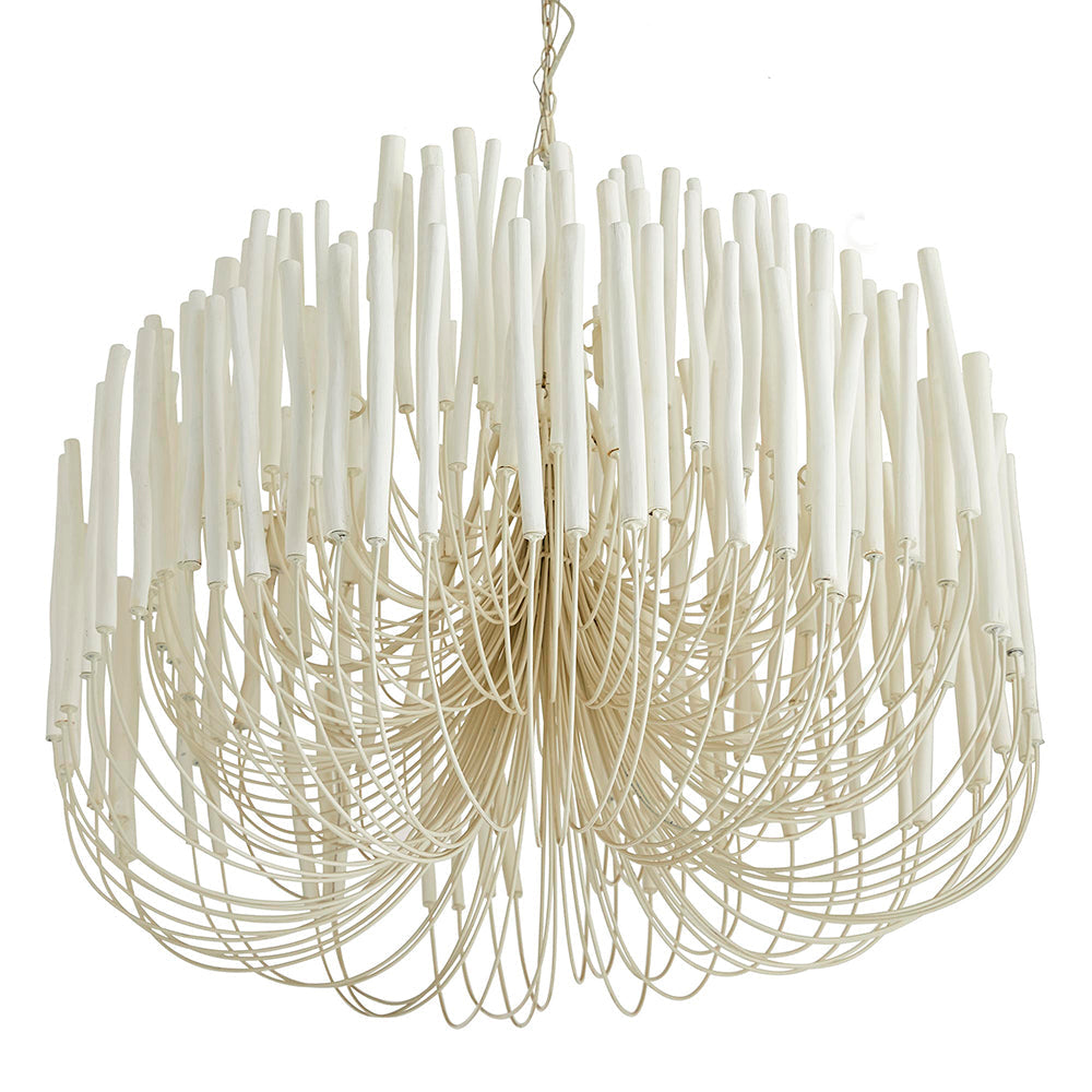 With its bold, modern design, this statement Arteriors Tilda Large Chandelier is sure to wow your family and friends. This rustically refined Arteriors Tilda Large Chandelier instantly transforms a space. The multi-tiered form features wooden dowels, finished in white, on curved and pliable iron arms. The wooden rods will arrive with a series of inherent fissures and cracks that will widen and multiply over time. This is considered a natural occurance and is both beautiful and intentional. During installation, please ensure the bulbs are not in contact with the wooden components by gently adjusting the arms to create a one inch minimum distance between the dowels and bulbs. Each piece will vary in size, shape and finish. Additional chain available (chn-242). The living room, bathroom, and hallway are some of the ideal spaces where the Arteriors Tilda Large Chandelier can shine! Even at the entrance of a foyer, this can be a better choice. The simplicity of this design delivers a crisp lighting fixture that works in a multitude of interior genres from contemporary to traditional.