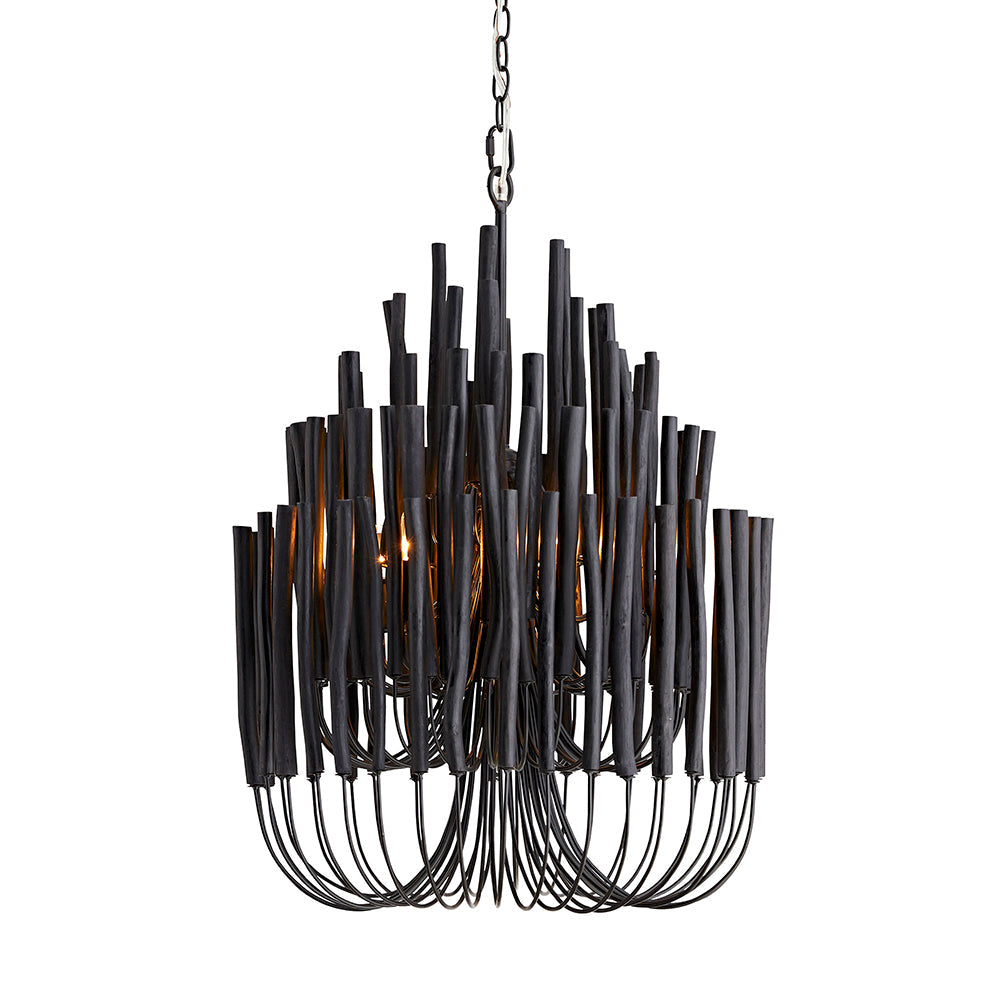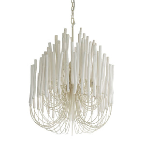 With its bold, modern design, this statement Arteriors Tilda Small Chandelier is sure to wow your family and friends. This rustically refined Arteriors Tilda Small Chandelier instantly transforms a space. The multi-tiered form features wooden dowels, finished in white, on curved and pliable iron arms. The wooden rods will arrive with a series of inherent fissures and cracks that will widen and multiply over time. This is considered a natural occurance and is both beautiful and intentional. During installation, please ensure the bulbs are not in contact with the wooden components by gently adjusting the arms to create a one inch minimum distance between the dowels and bulbs. Each piece will vary in size, shape and finish. Additional chain available (chn-242). The living room, bathroom, and hallway are some of the ideal spaces where the Arteriors Tilda Small Chandelier can shine! Even at the entrance of a foyer, this can be a better choice. The simplicity of this design delivers a crisp lighting fixture that works in a multitude of interior genres from contemporary to traditional.