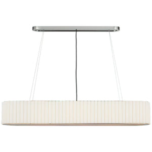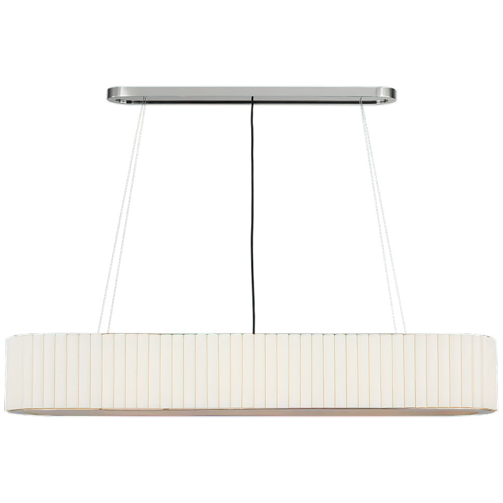 The scale of the Palati Large Linear Chandelier creates a dramatic centerpiece and is a study in material and repetition. It is in Bronze, Hand-Rubbed Antique Brass and Polished Nickel with Linen Shade. It has an oval canopy. It is perfect for an entryway in need of a little illumination, a staircase seeking brightening, or a kitchen island searching for some shine. The material, color, finish, and style of your chandelier should not clash with the rest of your interior decor, but complement it.