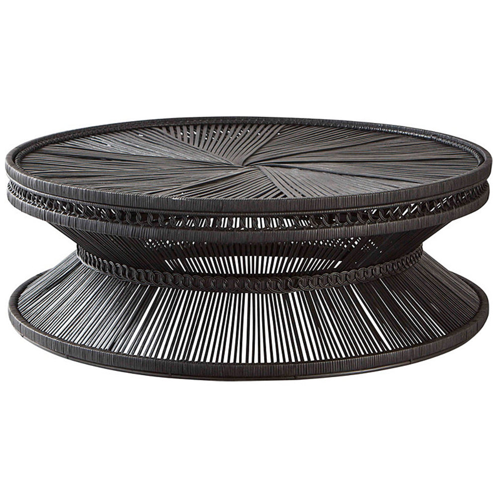 Round coffee tables are the perfect way to break up blocky spaces or sectional sofas. Upgrade your living room style with a splash of sophistication that will give an extra boost of modern design and industrial influences to any home. Discover this elegant McGuire Melek Cocktail Table Naturale, Nero finishes. Round Woven Rattan and Metal Frame with 45.25" Starphire Glass Inset. Our round shape McGuire Melek Cocktail Table. Coffee table makes it perfect fit for placing in front of a sectional sofa. This ultra-handy and handsome McGuire Melek Cocktail Table brings casual elegance to your living room.