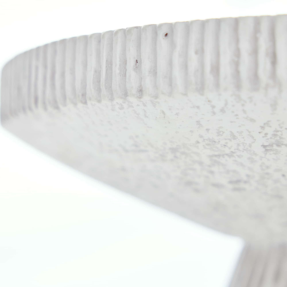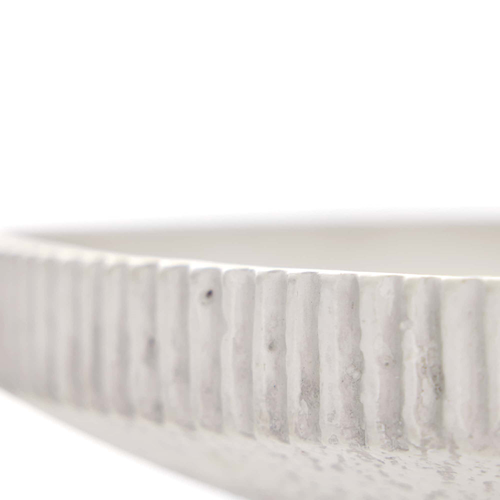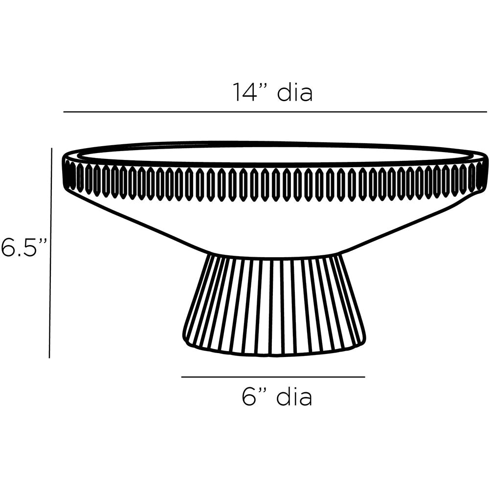 The Valour Centerpiece by Arteriors has a solid construction. Crafted in white terracotta, our Valour Centerpiece features a carved linear design, which imparts an authentic aged appeal. The pedestal bowl is designed with a cinched waist and serves as an elegant display for objects.
