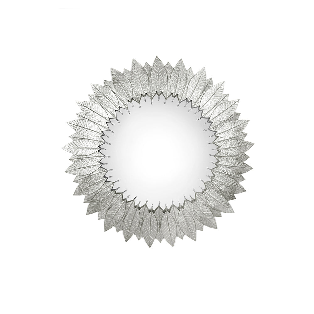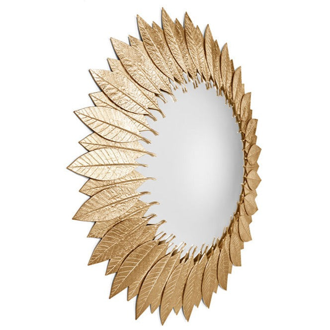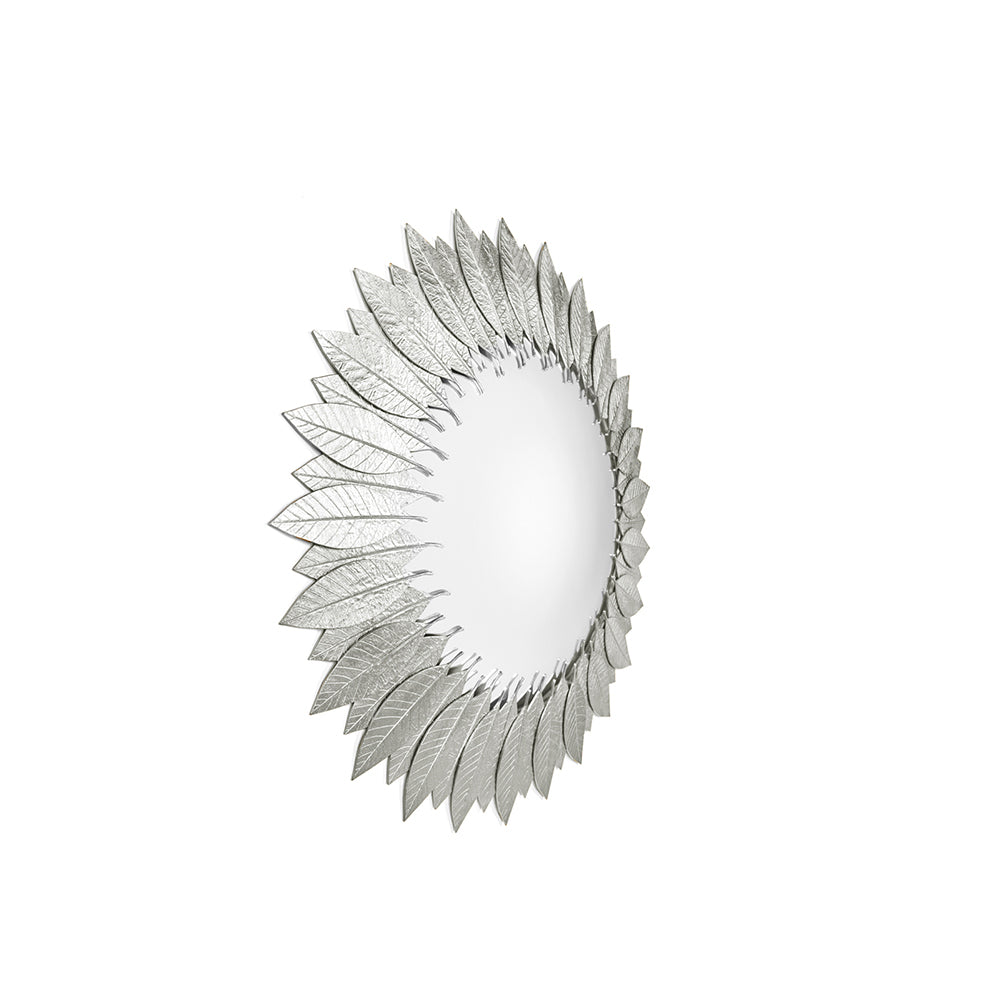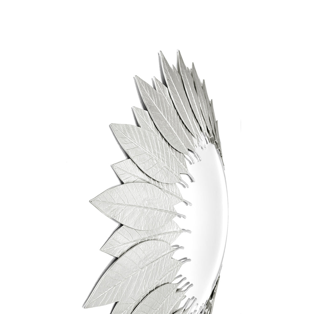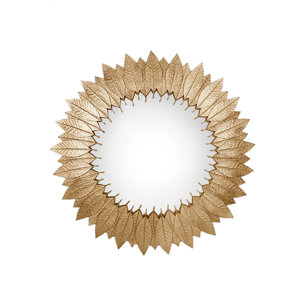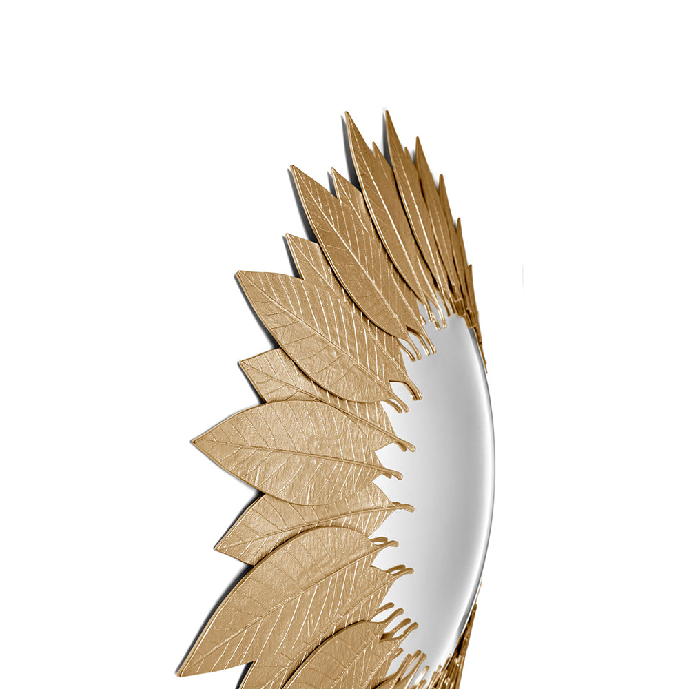 The Leaf mirrors’ golden frame, made from leaves molded in brass casting, evokes the falling of autumn leaves around a pond. The leaves are assembled by hand by artisans.