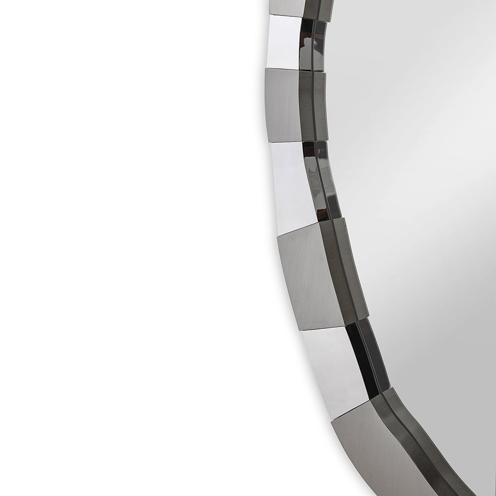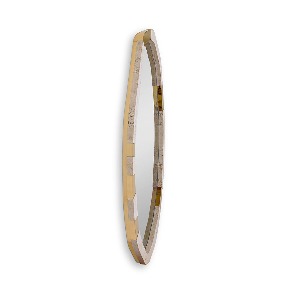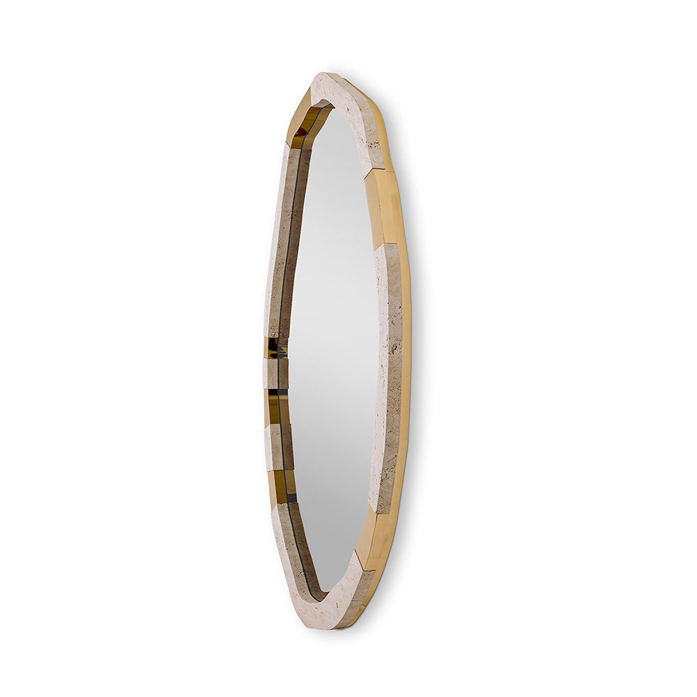 The Solstice Mirror captures an ethereal moment of alignment, a fraction of time when the Sun shines the brightest, and the longest. The metal is like the Earth, in an instance of stillness, embracing the mirror. Evocative, detached from unnecessary complexity, the Solstice is in essence a celebration all the everlasting elements that surround us – time, matter, light – and of oneself, reflected.