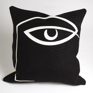 Indulge in luxe royal power and protection with the Horus Pillow from Global Views. Its embroidered Eye of Horus design is a symbol of good health and adorned with inverted colorways on both sides. Experience the sophistication and exclusivity of this ancient Egyptian piece in your home.