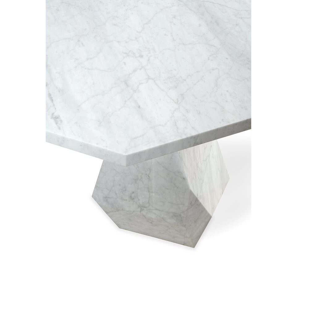 Encapsulating the commanding presence of Nature, the Rock Dining Table is a bold design statement. Made from a single block of marble, the Rock is a soothing yet unmistakable presence. The likeness of its faceted geometry can be found in Nature in raw form.