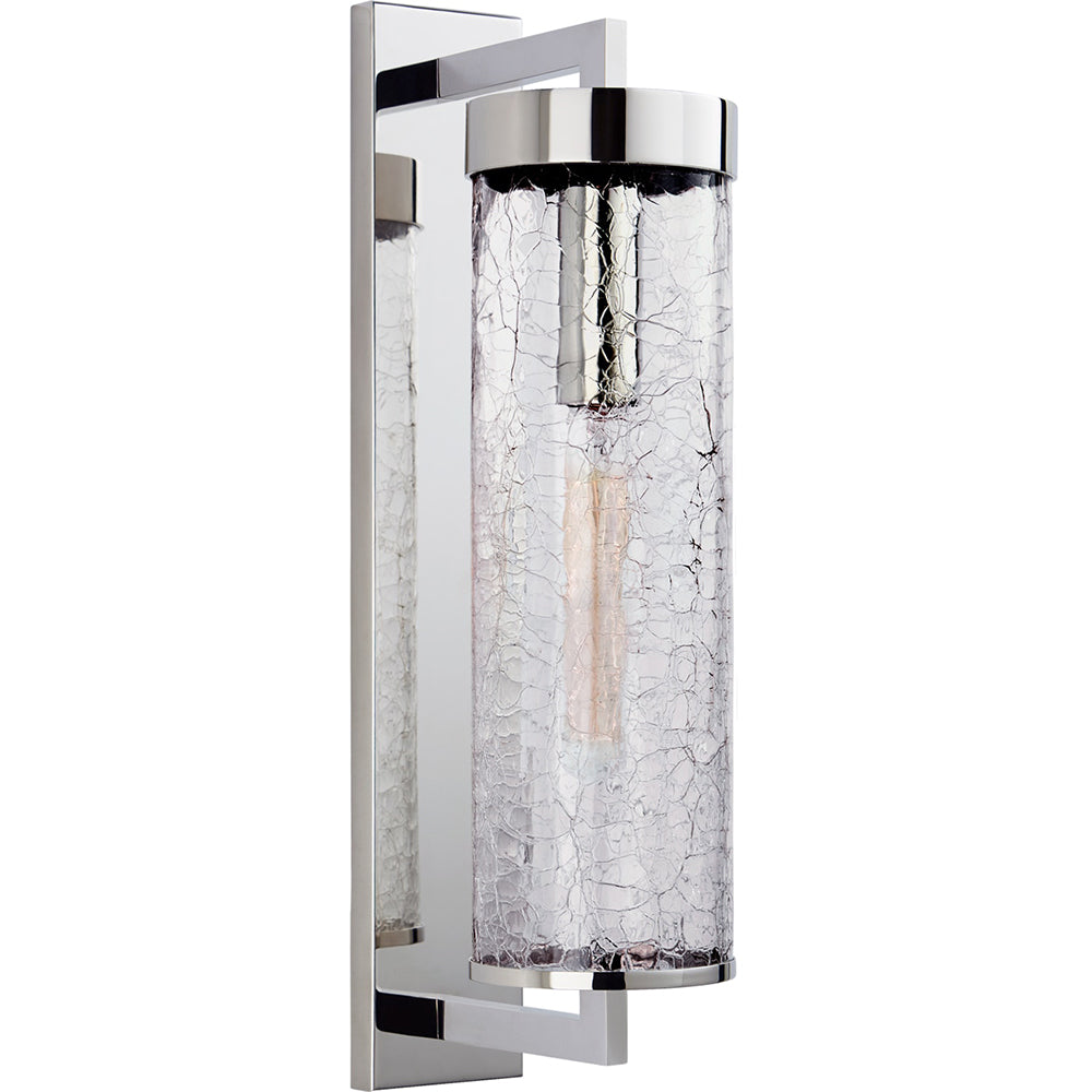The Liaison Large Bracketed Sconce blurs the lines of modern and classic with its clean architectural metal detailing and the dynamic beauty of its fractured glass shades.Liaison Large Bracketed Sconce by Kelly Wearstler is perfect for both indoor or outdoor installation.Liaison Large Bracketed Sconce by Kelly Wearstler is available in Antique Brass, Bronze and Polished Nickel. This fixture is rated for use in wet locations.