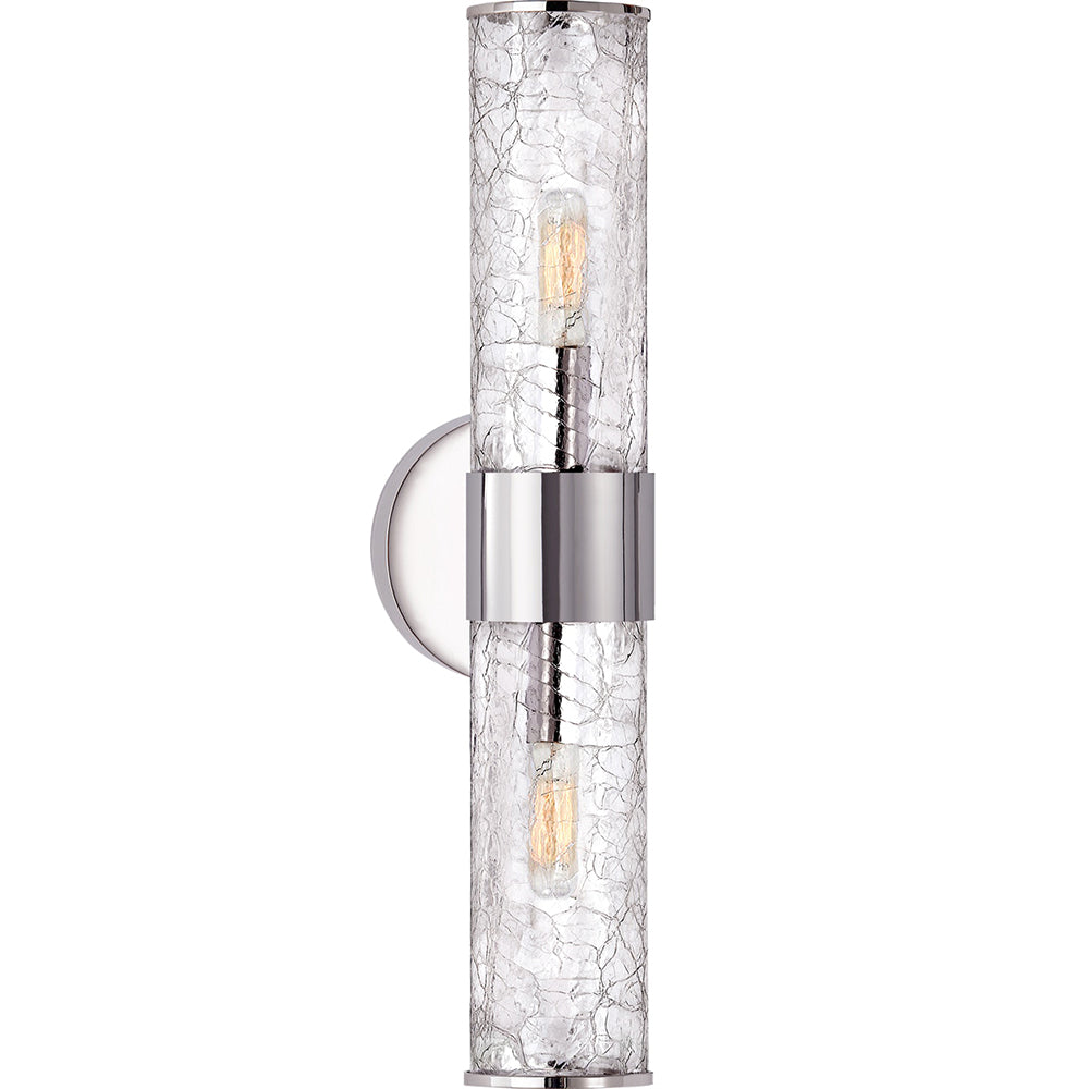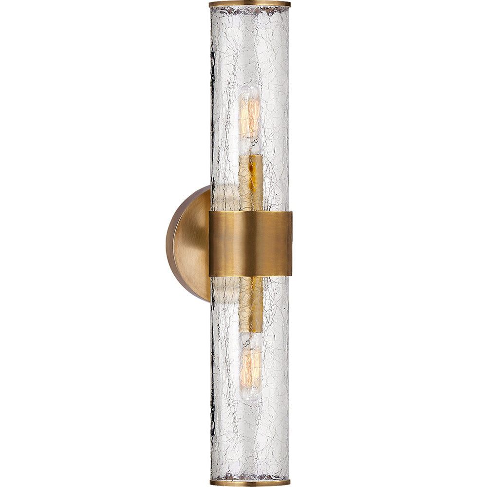 Liaison Medium Sconce by Kelly Wearstler blurs the lines of modern and classic with its clean architectural metal detailing and the dynamic beauty of the fractured glass. Liaison Medium Sconce by Kelly Wearstler fixture is appropriate for both indoor and covered outdoor spaces and is available in Antique Burnished Brass, Bronze, and Polished Nickel.