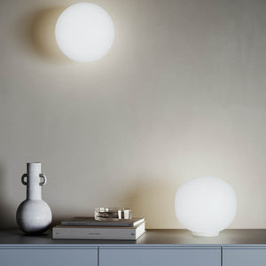 Presenting the Volum 14 Table Lamp. The Lodes Volum 14 Table Lamp is part of an exclusive series of glass lamps designed to combine the poetically simple with the technically complex. The Lodes Volum 14 Table Lamp features a blown glass globe shape with a glossy white finish. With its distinctive shape, the Lodes Volum 14 Table Lamp exudes an elegant and tasteful allure.