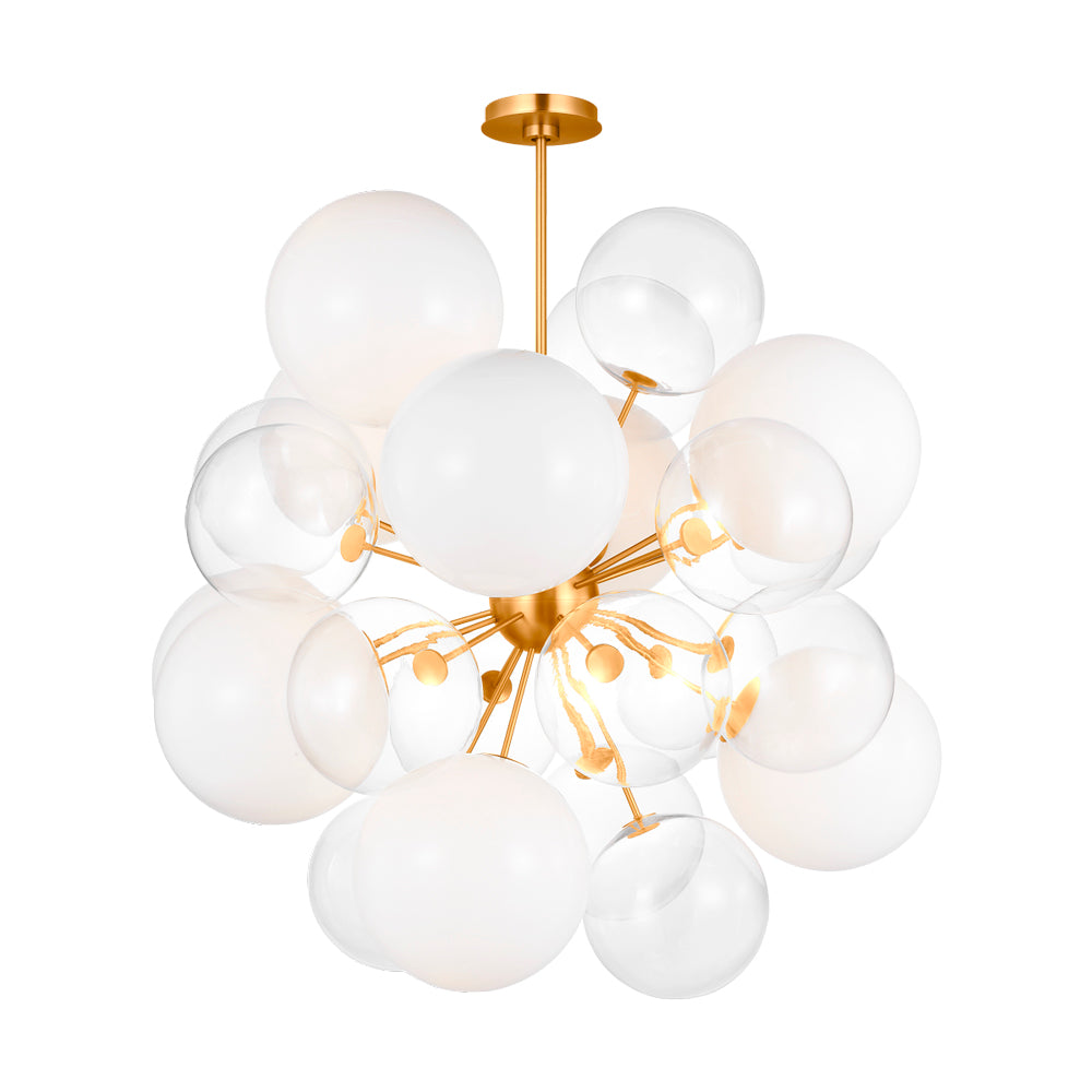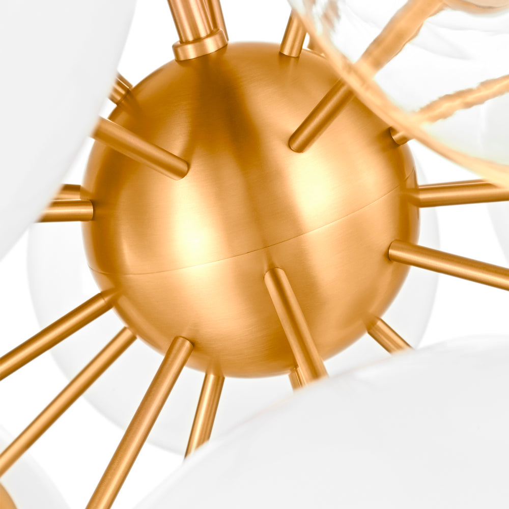 Mid-century drama. Greet your guests with a warm and welcoming glow in the entryway or dress up your dining room with this eye-catching Visual Comfort Aria Large Chandelie. This Visual Comfort Aria Large Chandelier features a chic silhouette for a sleek, streamlined look that gives your living room or dining room plenty of mid-century modern flair. Discover this modern Visual Comfort Aria Large Chandelier available in Burnished Brass finish. Play up your space with this chandelier. This super bright Visual Comfort Aria Large Chandelier is very suitable for living room, dining room, farmhouse, kitchen island, bedroom, bathroom, study, home office, foyer, coffee shop..etc Plus, it's safe to use in damp locations like bathrooms and works with a dimmer switch for added versatility.