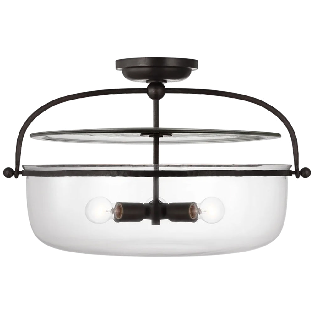 The Lorford Large Semi Flush Lantern features a glass shade above its glass bowl to distribute light evenly and create a special kind of ambiance. This lantern is available in two different glass options, clear glass and antique mercury glass, and two finish options, allowing you to choose the perfect match for your space. The Lorford Large Semi Flush Lantern is constructed using high-quality materials, ensuring its durability and longevity.