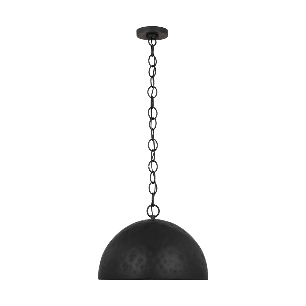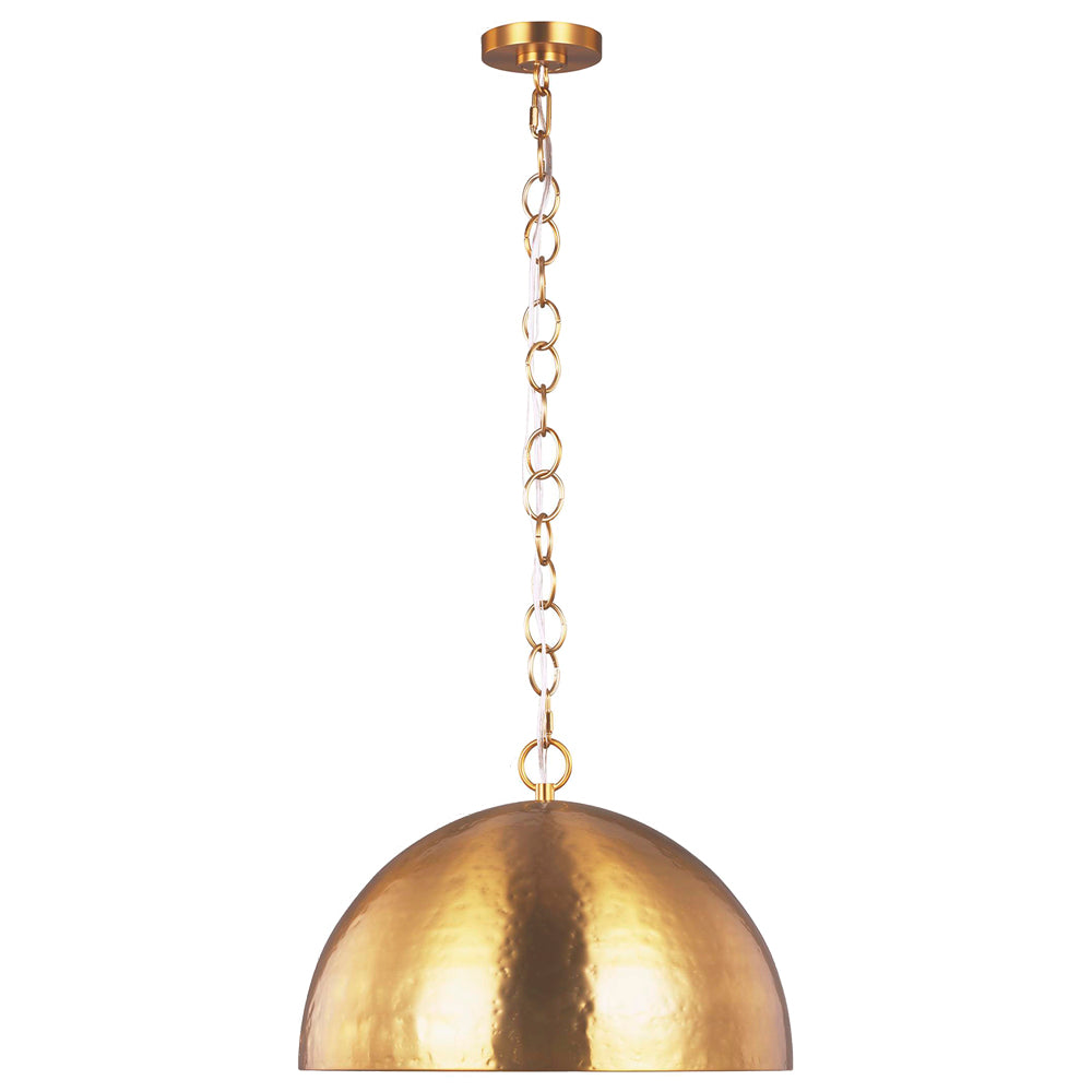 Designed with neutral, clean lines, the Visual Comfort Whare Large Pendant is ideal for an eat-in kitchen, dining room, and even a bedroom. Elevate your home decor with our stunning chandelier, designed to add a touch of sophistication and charm to any room. Handcrafted of brass and dramatically scaled, our Visual Comfort Whare Large Pendant is a statement piece. The rounded industrial form is softened by its hand-hammered texture, and the warm, burnished brass finish reflects light beautifully. Crafted with a metal body, this Visual Comfort Whare Large Pendant exudes durability and elegance, making it a perfect choice for those who see a statement piece that will stand the test of time. With its sleek and contemporary design, our Visual Comfort Whare Large Pendant seamlessly blends modern and industrial elements, creating a captivating focal point in any space. The combination of black and gold colors adds a touch of luxury and refinement, making a versatile choice that complements a wide range of interior styles, from industrial to Scandinavian.