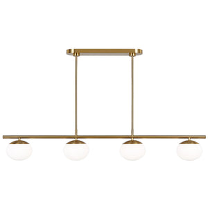The Visual Comfort Lune Medium Linear Chandelier is an objet d'art for the home, crafted from the creative vision of designer Ellen DeGeneres. The Visual Comfort Lune Medium Linear Chandelier is finished with distinguishing aged iron or burnished brass, this sophisticated chandelier brings an air of tasteful exclusivity and alluring elegance to any room. Allowing for a unique and stunning lighting experience, the Visual Comfort Lune Medium Linear Chandelier is a timeless piece that will elevate any interior.