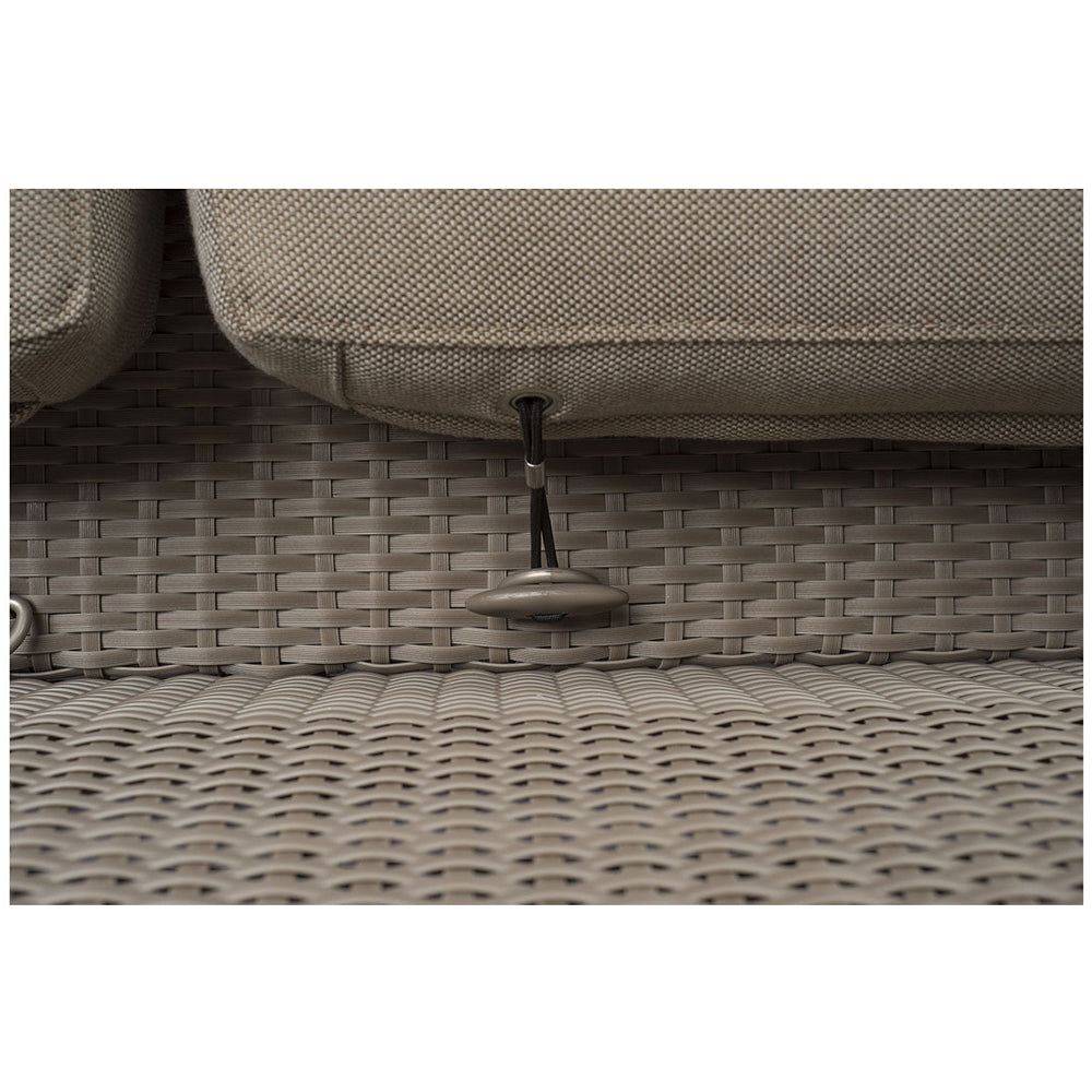 Creating comfortable spaces: the McGuire Barbara Barry Plateau Sectional Double double seat is generously deep and wide, with a low, contemporary profile. The design of McGuire Barbara Barry Plateau Sectional Double itself is stunning. Fits with the sectional corner and slipper to create any number of configurations; metal clamps underneath ensure a secure fit. Crafted with durable woven resin in a neutral grey basketweave pattern hand wrapped over a sturdy powder-coated aluminum frame. Removable cushions feature residential material and construction wrapped in a waterproof and mold-resistant casing, creating the same level of comfort as indoor furniture. Driftwood and Java Bronze finishes. Standard Natte Heather Grey or Sailcloth Shell fabrics for immediate delivery. Available C.O.M.