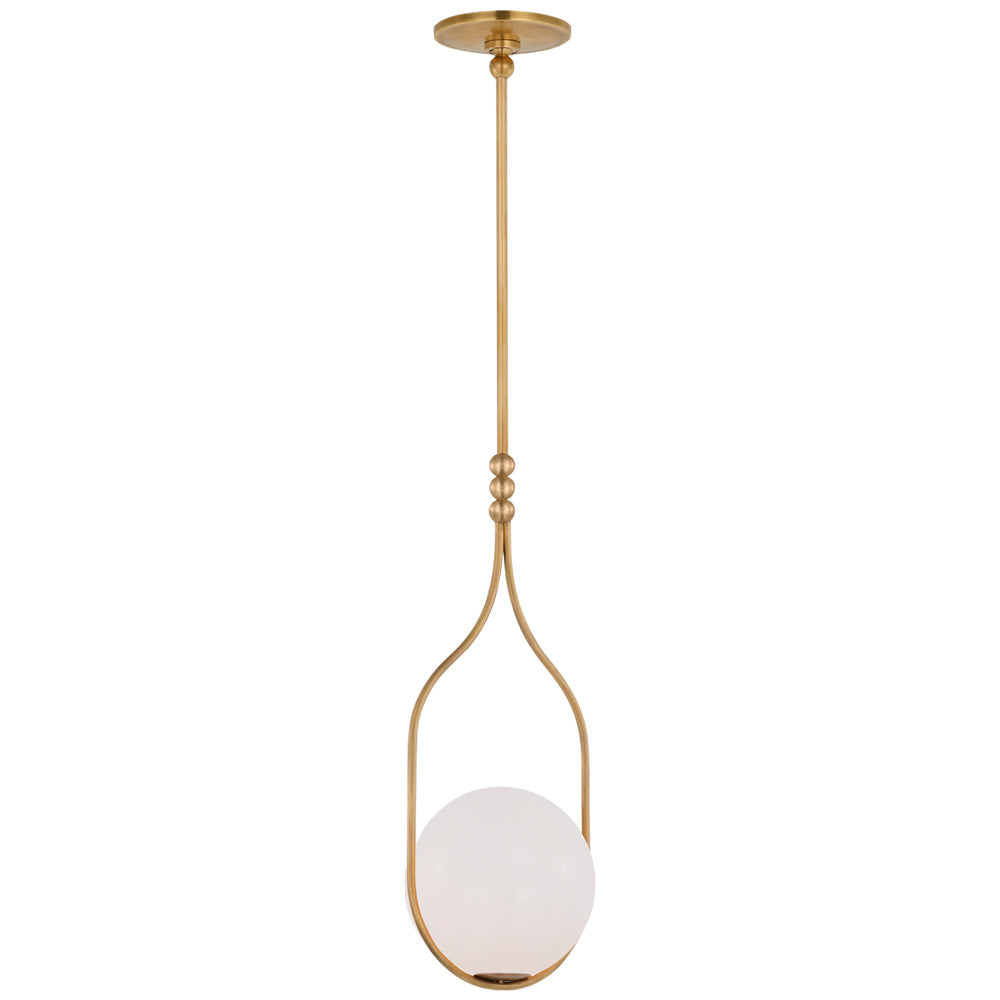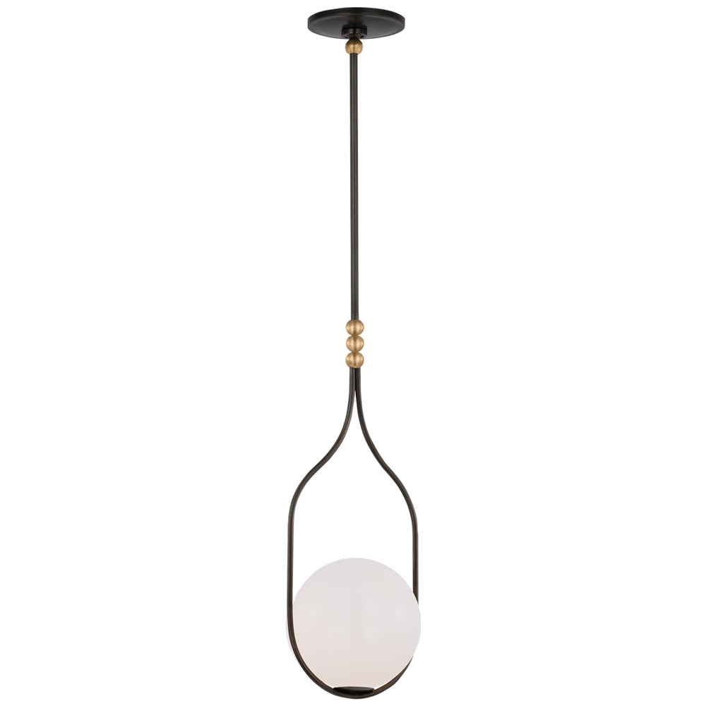 Discover this modern Visual Comfort Jodo 9" Pendant available in Bronze And Brass, Polished Nickel and Hand-Rubbed Antique Brass. The centerpiece is a large, white glass globe, suspended from the canopy. You can adjust the hanging height as per your request. With an inviting white shade adorned with strong metallic stem and framing elements, the Visual Comfort Jodo 9" Pendant creates a cozy ambiance wherever it is placed. Use it alone or in multiples to easily boost your illumination and style! This steel fixture is designed to last by resisting rust and corrosion.