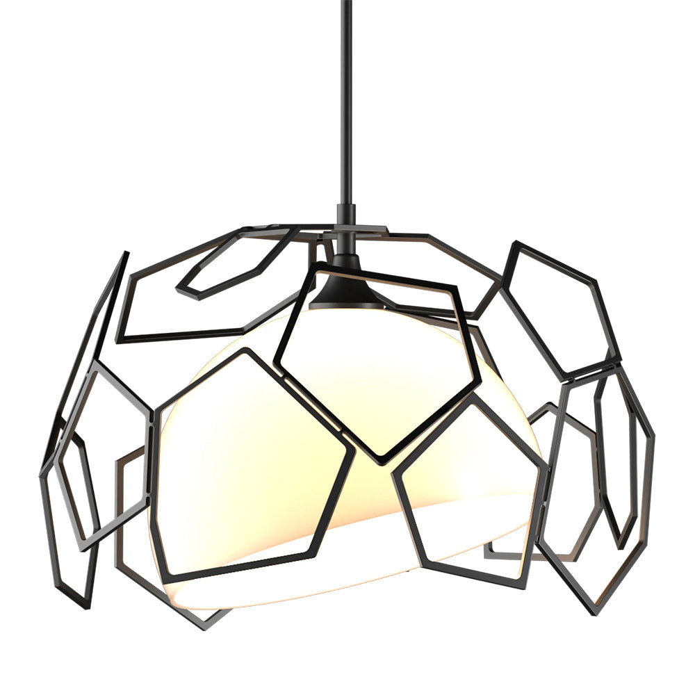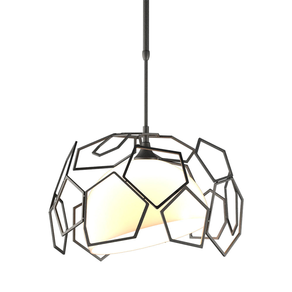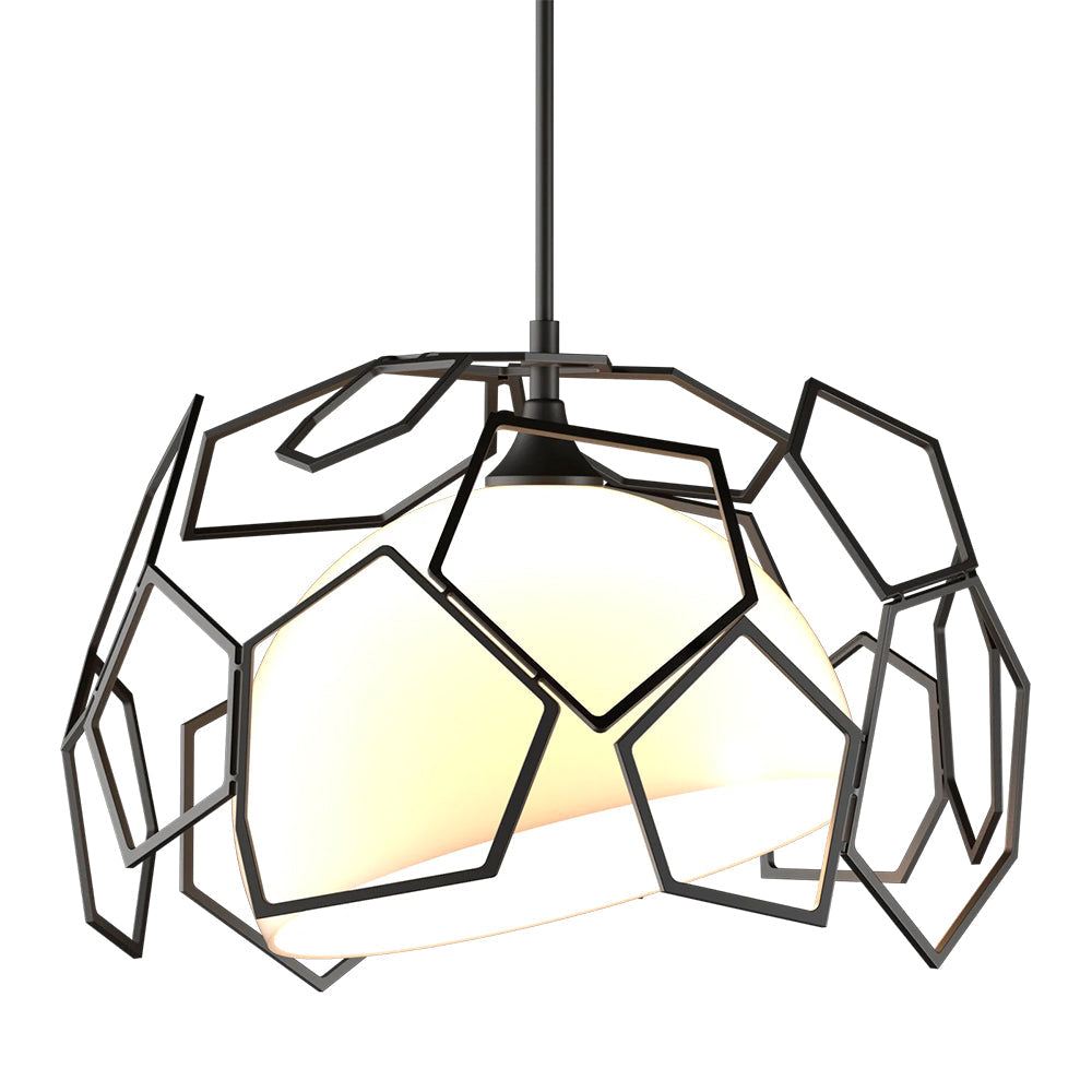 Experience the luxury of the Hubbardton Forge Umbra Outdoor Pendant with its asymmetrical polygonal shade and bright, opal glass. Its elegant geometric design and high-end materials make it a show-stopper both indoors and out.
