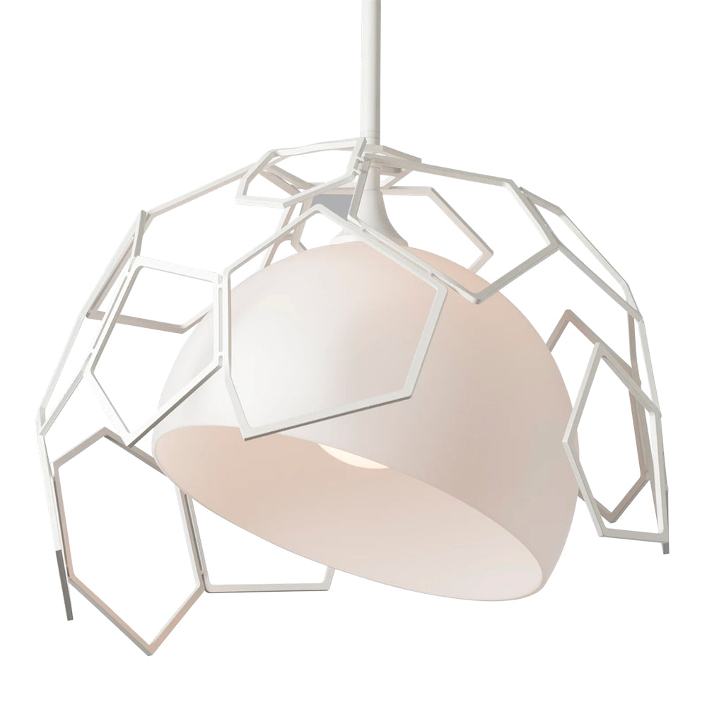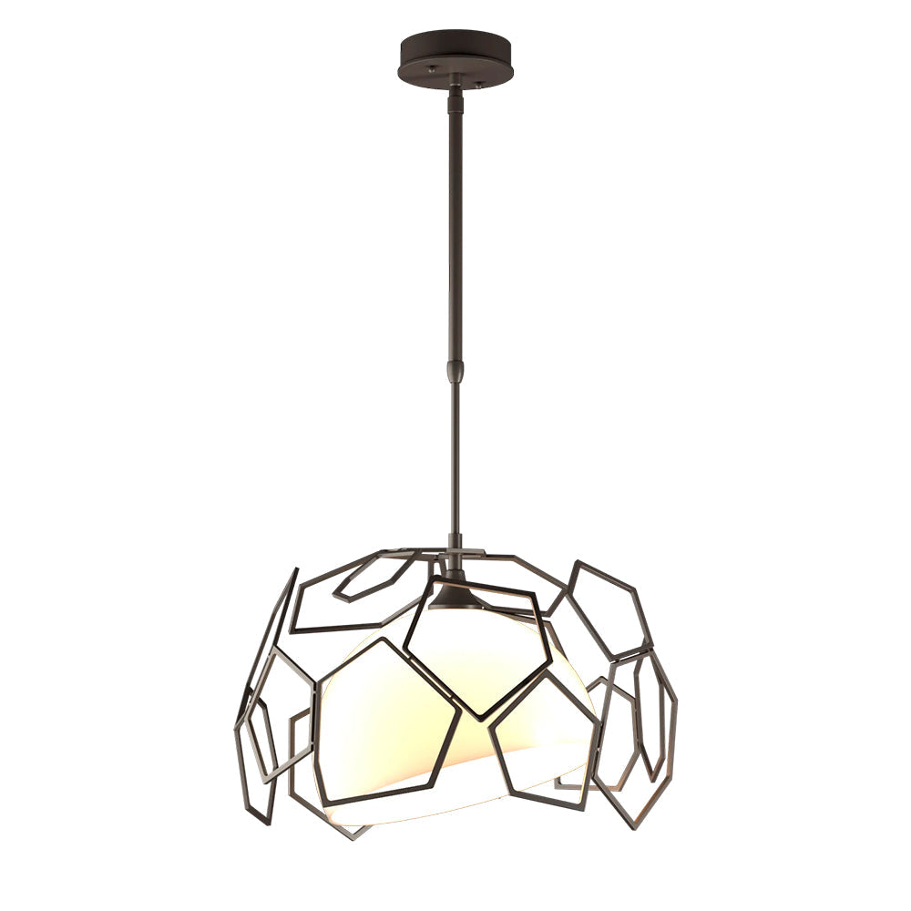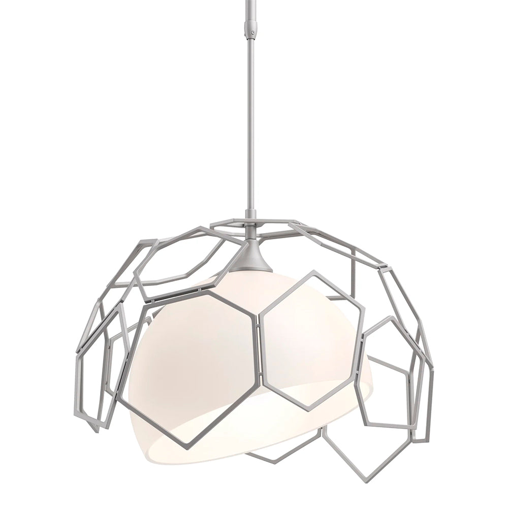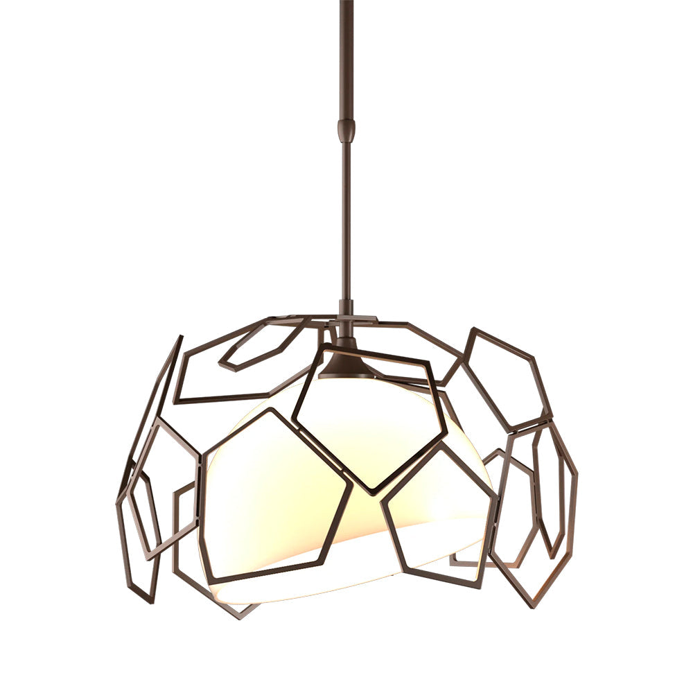 Experience the luxury of the Hubbardton Forge Umbra Outdoor Pendant with its asymmetrical polygonal shade and bright, opal glass. Its elegant geometric design and high-end materials make it a show-stopper both indoors and out.