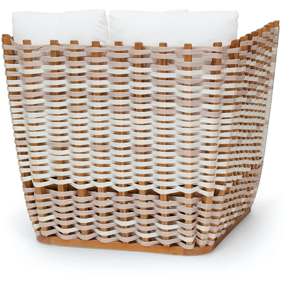 Transform your outdoor space with the timeless elegance of the Palecek San Martin Outdoor Lounge Chair. The Palecek San Martin Outdoor Lounge Chair is handcrafted from natural teak and marine-grade synthetic rope, this chair features a golden brown finish and maximum UV protection, ensuring beauty and durability. The cushioning seat and three back cushions provide the perfect spot for relaxation and repose. With its graceful silhouette, the Palecek San Martin Outdoor Lounge Chair will bring an air of sophistication to any outdoor setting.