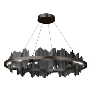 This magnificent and dramatic Hubbardton Forge Hildene Circular Led Pendant, with its crafted hills and valleys creating shadow and light, is a focal piece in any space. Part of the Hildene Collection, this large pendant's curved metal plates are awash in up-and-down light emanating from the LED lightguide encased in its circular frame. The Hubbardton Forge Hildene Circular Led Pendant is offered with a two-toned finish option, with the canopy and frame in one finish, and the metal plates in a choice of accent colors. Also available as a linear cable-hung pendant, a large linear rod-hung pendant, and a wall sconce. It adopts a modern, bright, and simple design, especially suitable for rooms that like minimalism or minimalist decoration. This kind of atmosphere brought by lamps and lanterns will make the room perfect. Circular offers great versatility. Its timeless yet contemporary design of this Hubbardton Forge Hildene Circular Led Pendant gives it character and perfectly illuminates spaces of high architectural value. This modern pendant reate ambiance in living rooms, kitchens, and more.