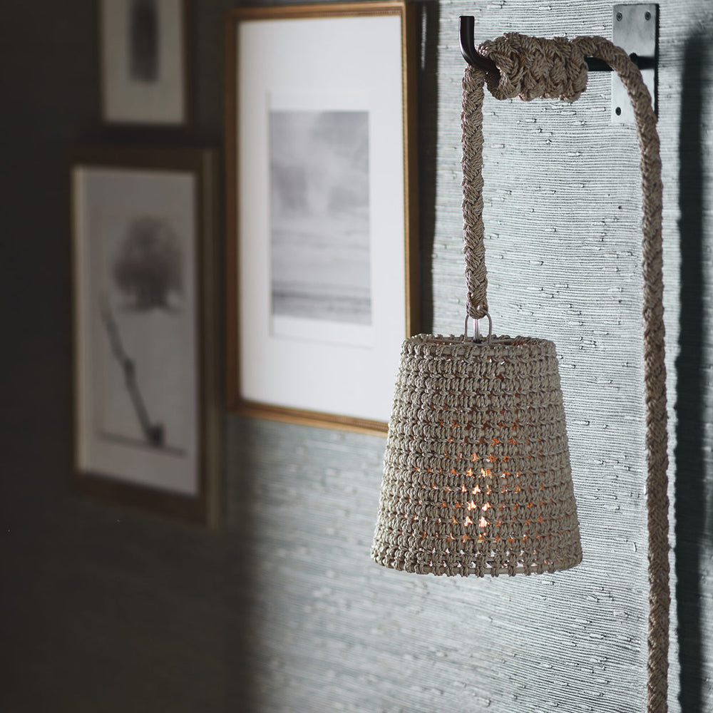 This wall Palacek Green Oaks Wall Pendant is the perfect addition to your home for a modern look and feel. It provides plenty of light to brighten up your home. It features an Natural and White Sand rope. Jeffrey Alan Marks Collection. Palacek Green Oaks Wall Pendant intricately woven with a core rattan frame and natural or white sand rope. Black metal wall mount included. Add a touch of contemporary style as you illuminate any room in your home with this versatile Palacek Green Oaks Wall Pendant. It is perfect for dining room,bedroom,living room,foyer,girls’ room,above table, bathroom,kitchen,restaurant and more. Modern design, uniform light transmission, soft light, give you a warm and quiet atmosphere. Functional and versatile, this Palacek Green Oaks Wall Pendant is the perfect wall light for any space! or hanging next to beds, desks, or decorative accents. Plug-in pendant with average cord length of 22 feet.