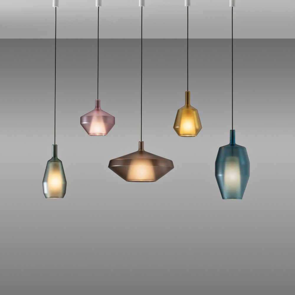 Pairing the artful allure of modern sculpture with the function of a light fixture, this Penta MoM Low Suspension Lamp makes a statement as it illuminates any arrangement in your home. Penta MoM Low Suspension Lamp are inspired by the Venetian tradition, and refer, in the shape and opaque finishings, to the classical Murano glass vases. Also available in table and wall variants, in the glossy variants they look like precious stones. An amazing lamps collection with various shape, dimension and colors. The characteristic design for these lamps are soft outline whit rounded corners and matt coloring, archive thanks to a particular oxidation process. This harmonious combination of shape and colors gives likable aesthetic when are off and a soft and comfortable light when are on. Perfect in a single combination and more with a combination composing. The Penta MoM Low Suspension Lamp are perfect for living, kitchen and even in public place like bar, restaurant. This creative Penta MoM Low Suspension Lamp not only has a lighting effect but also has a good decorative effect, the chandelier definitely looks better than the picture.