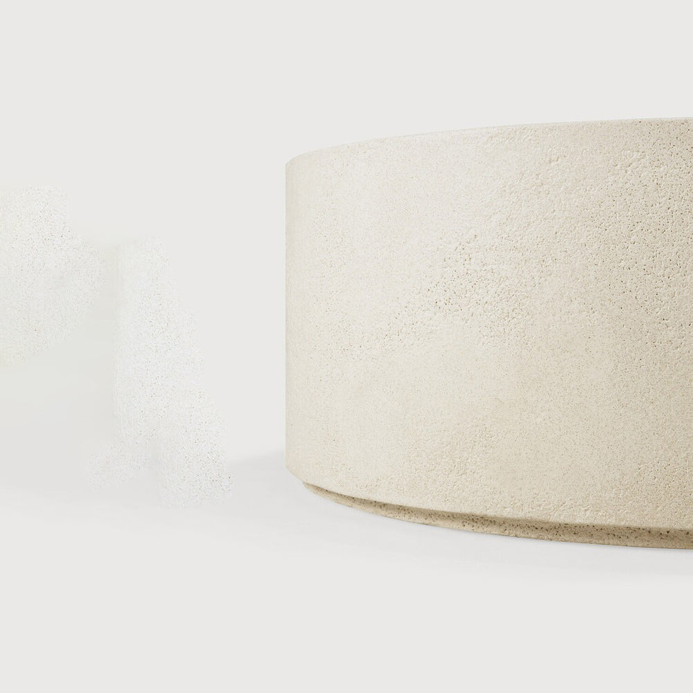 Elegant simplicity forms the basis of the Elements collection. Seamless and softened forms blend perfectly with textural character at the expert hands of artisans. Each piece offers a slightly unique identity with a high-performing, fine, earthy stone finish. Elements make a durable and stylish addition to a variety of spaces. Elements Round Coffee Table by Ethnicraft is made from Microcement, a mixture of fine aggregates and minerals blended to form a unique finish.