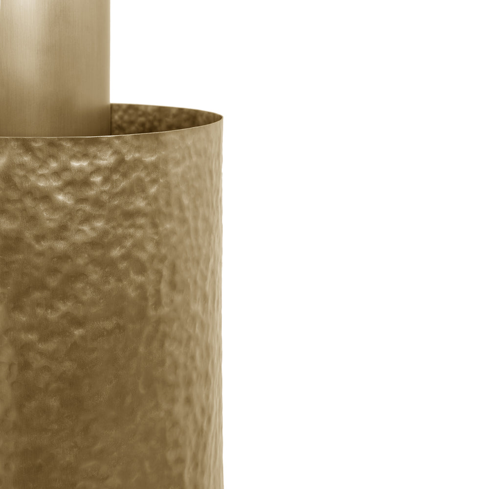 Projecting dramatic and warm light, the Bond Wall Lamp is an elegant and strong piece, with an exterior arc in polished hammered metal that enlaces the interior arc in brushed plain metal.