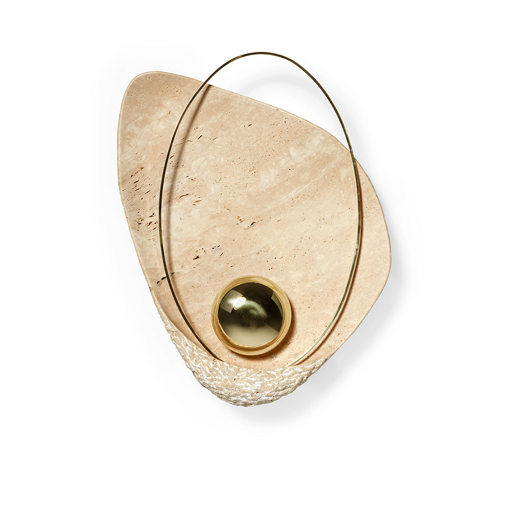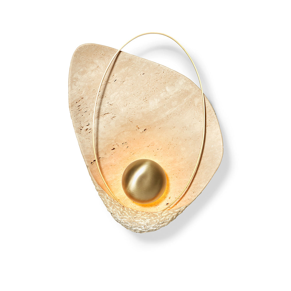 The Pearl Wall Lamp is a poetic handcrafted tribute to Nature’s mysterious ways. The piece, made in marble and metal, represents one of its quintessential attributes – serendipity. The magnificence of pearls, when produced naturally by oysters, is as breathtaking and it is exquisitely rare. The Pearl Wall Lamp’s marble shape is carved by hand, making each piece, much like a natural pearl, an absolutely unique sculpture.