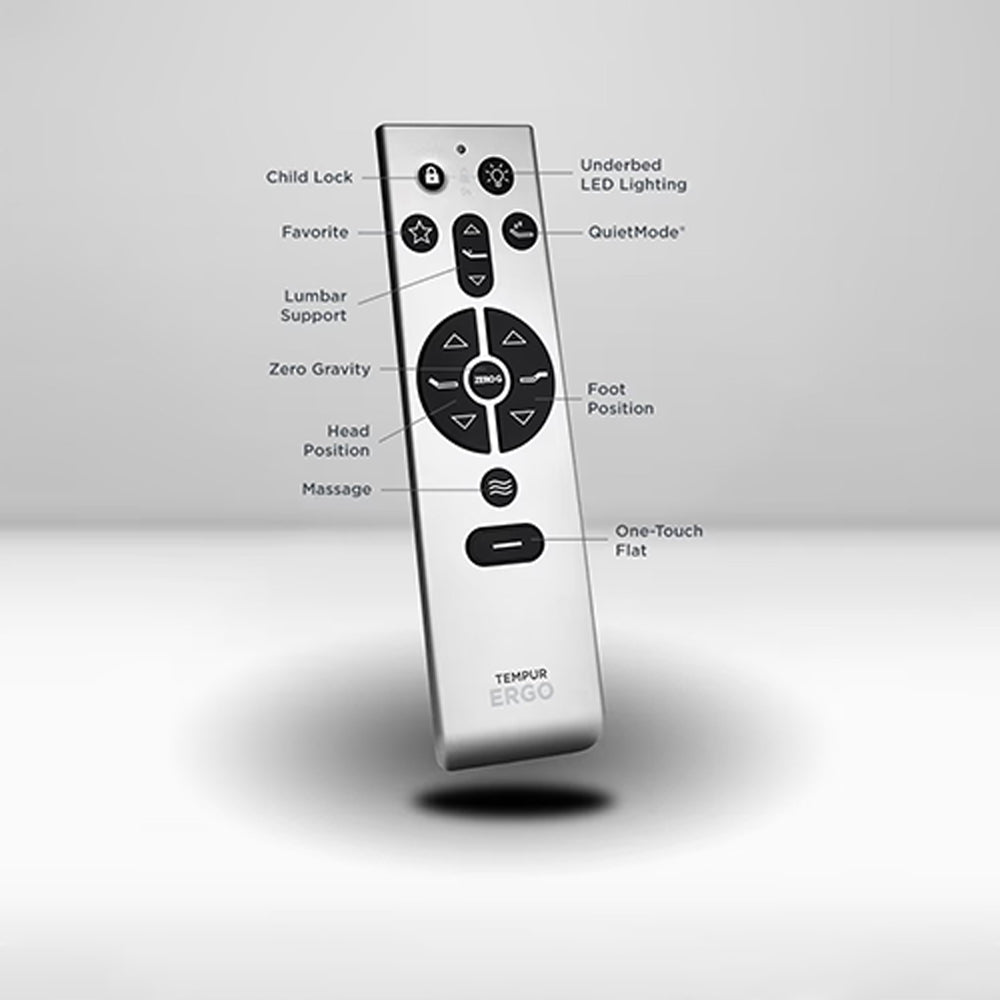 Experience the ultimate in sleep luxury with the TEMPUR-Ergo Power Base by Tempur-Pedic. This premium sleeping solution offers a collection of features designed to work in tandem to provide an enhanced, comforting sleep experience including Lumbar Support, Quiet Mode®, USB ports, Massage, and Underbed Lighting. Elegantly crafted and finely constructed, the TEMPUR-Ergo Base is the perfect upgrade for your sleep.