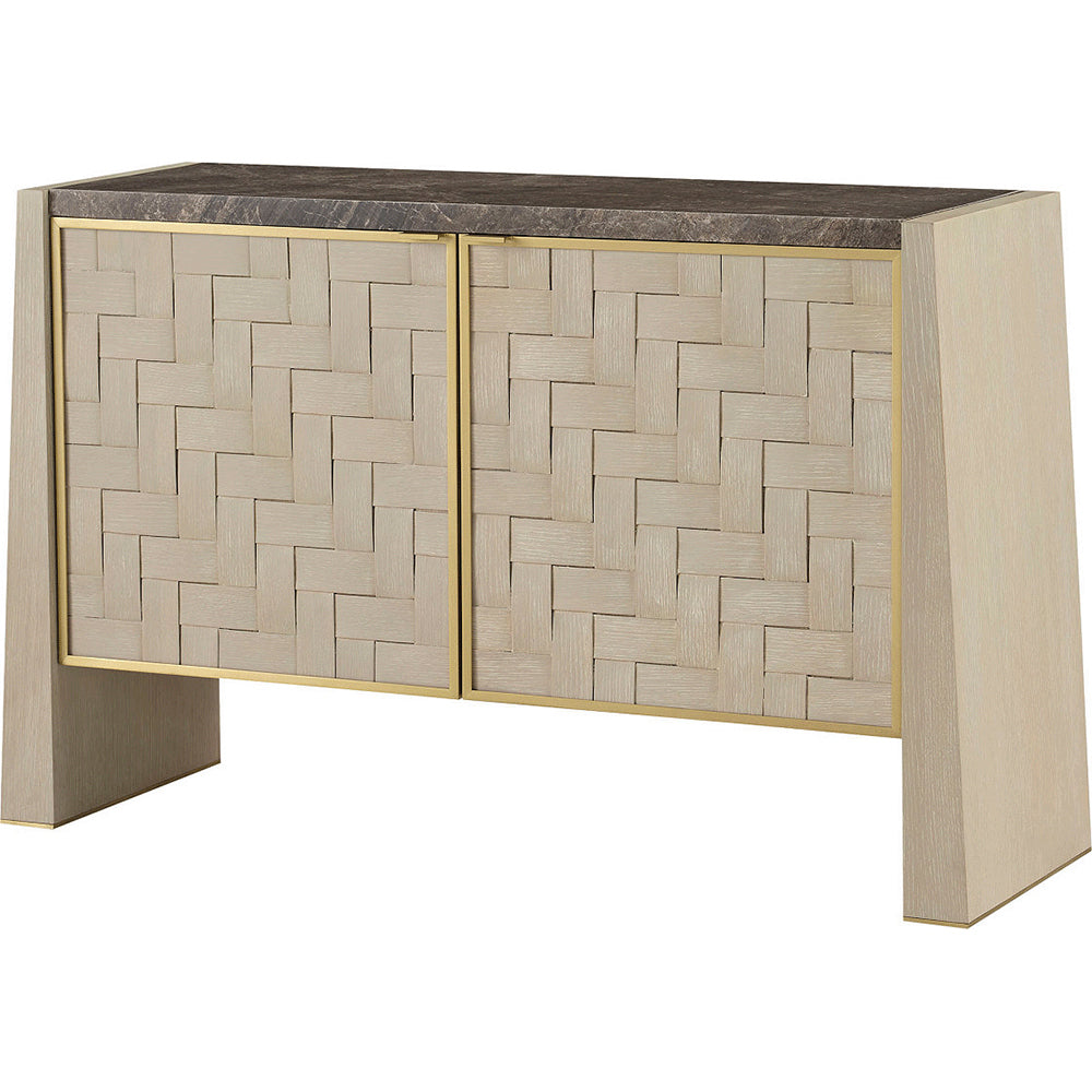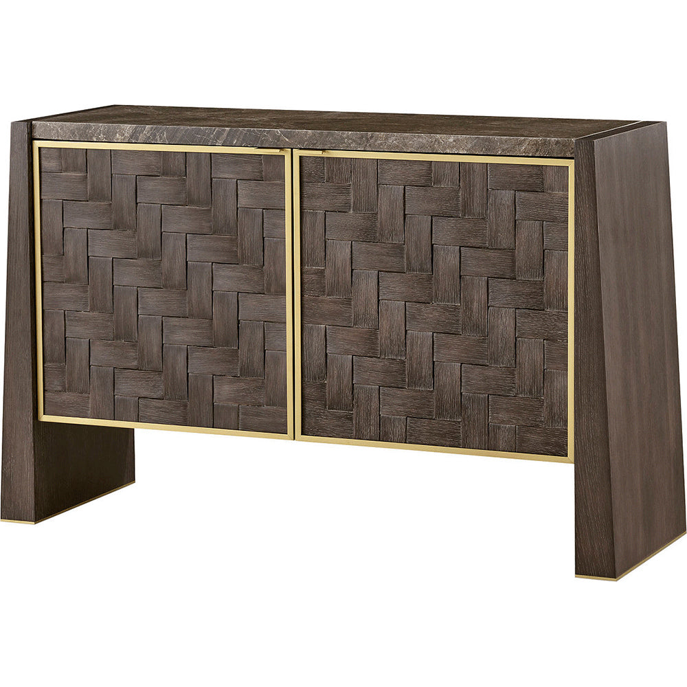 It's time to give your home a fresh new look! Update your home with the modern-inspired style and design of this accent storage cabinet. Discover this ultra modern Baker Thomas Pheasant Brera Cabinet available in Obsidian with Bronzino and Straw with Bronzino finishes. The Baker Thomas Pheasant Brera Cabinet creates immediate stopping power with its highly textured and carefully woven oak door panels. Inspired by the woven leathers of Milan, this remarkable piece features a marble top for an additional layer of color and personality. It's perfect for stowing away a variety of different items like organizing bins, stacks of books, and so much more. Adds to the classic look and feel of your home with a modern twist. With enough space to fit your liquor bottles, this Baker Thomas Pheasant Brera Cabinet will be a great fit for your living or formal room.