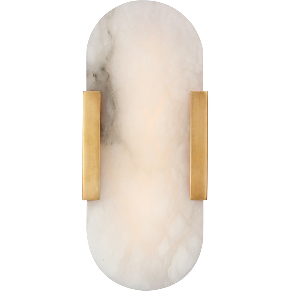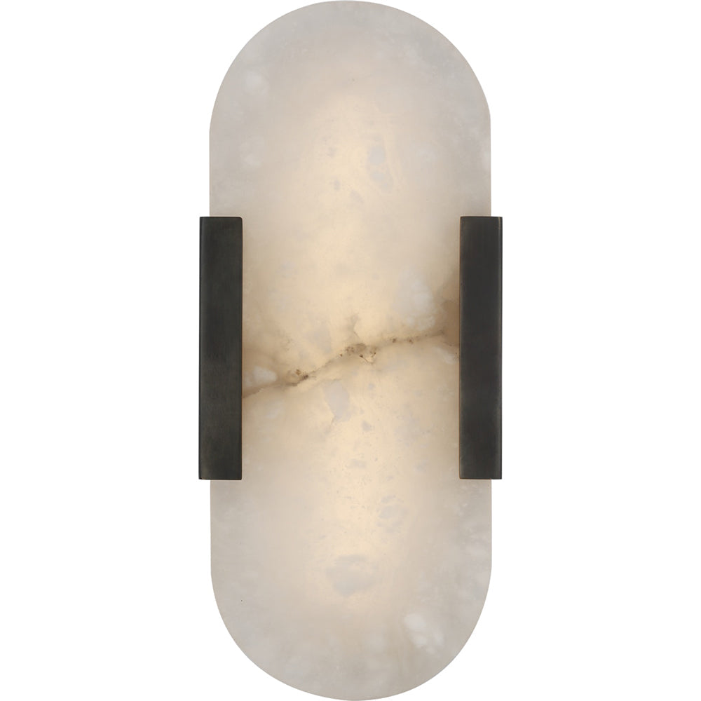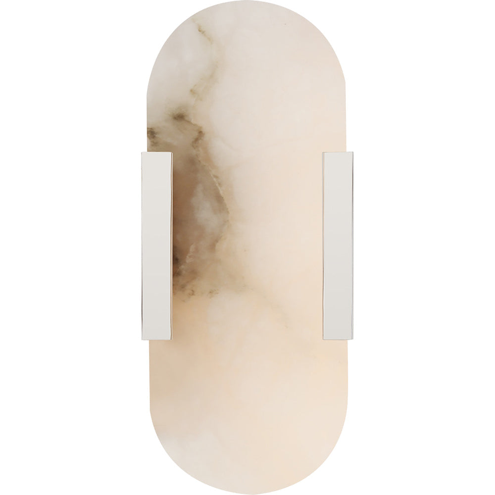 Effortlessly pairing natural alabaster and sleek metal detailing in a streamlined geometric form, the Melange Elongated Sconce exudes a modern refinement while emphasizing the beauty of natural stone. This fixture features hand-carved natural alabaster with either Burnished Brass, Bronze or Polished Nickel detailing and is rated for damp locations.