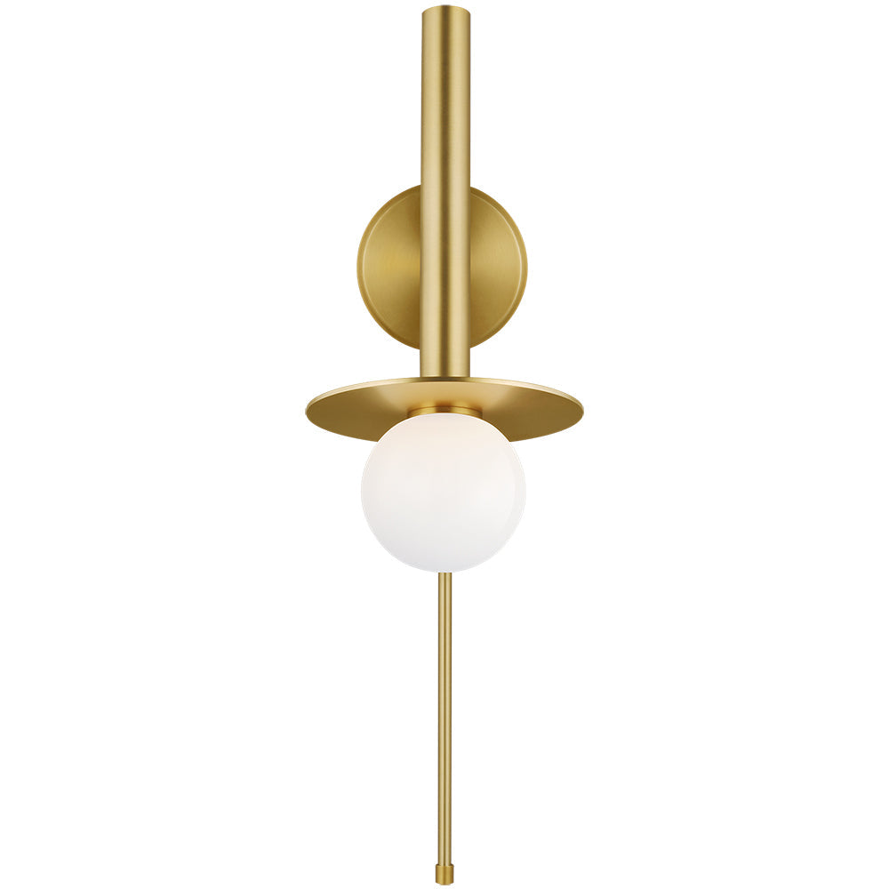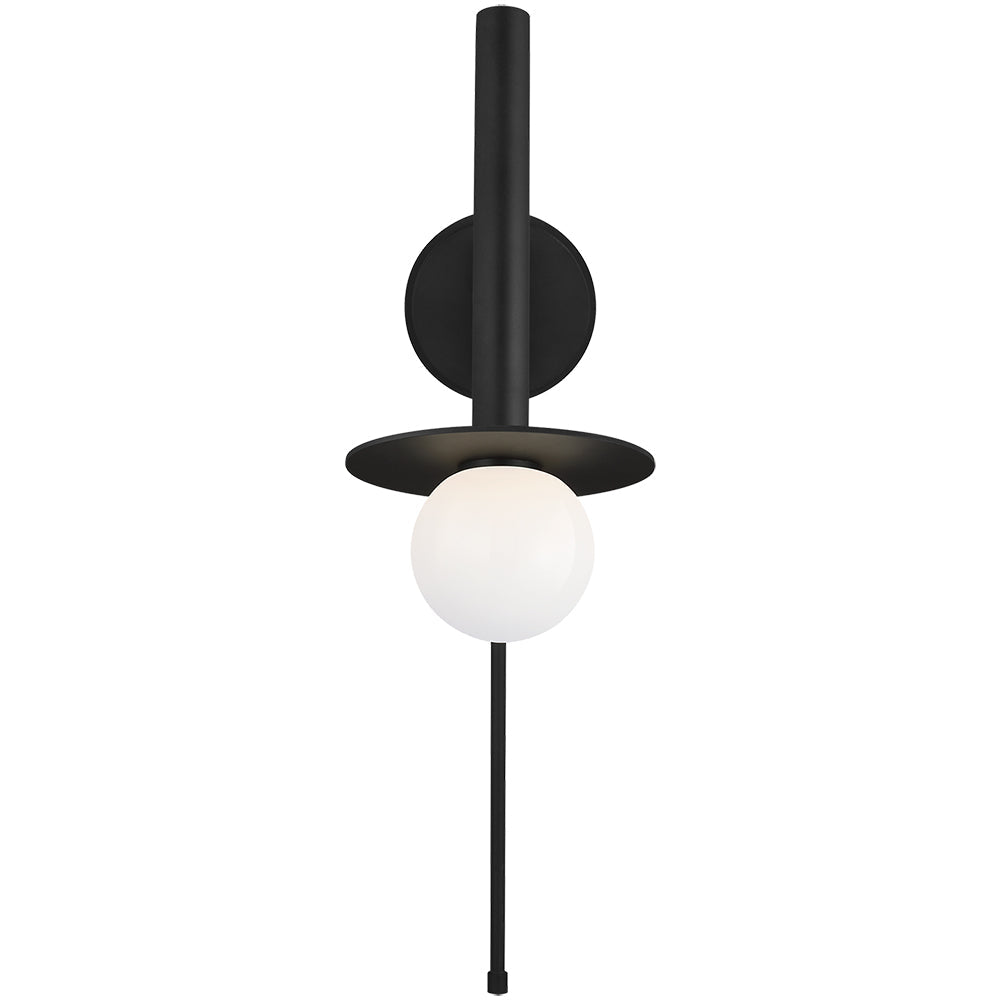 Looking to lighten up a dim room? If you can't sacrifice square footage, a wall sconce is a great option for (literally) brightening bare walls with a pop of decor and illumination. Nodes task, ceiling and wall lighting is minimal yet bold, highlighting Kelly's distinctive juxtaposition of mixed-materiality and curvilinear form. Light radiates from milk glass globes set against metal discs. All fixtures can be used or without the discs. Discover this ultra modern Nodes Pivot Sconce available in Burnished Brass or Midnight Black cast canopy. Hanging fixtures within this family feature black fabric cords, while pivot sconces can be cord and plug or hard wire. The Nodes lighting family features wall sconces and more—highlighting her unique touch for contrast and harmony with mixed-materiality and curvilinear forms. This Nodes Pivot Sconce is a stunning feature to accentuate high ceilings and open spaces. This Nodes Pivot Sconce is great for indoor bathroom fixtures, kitchens, powder rooms, dining rooms, dressers, mirror cabinets, vanities, living rooms, foyers, hallways, etc.