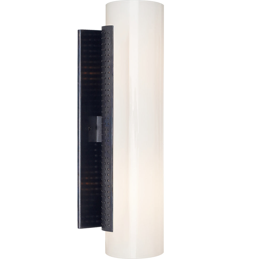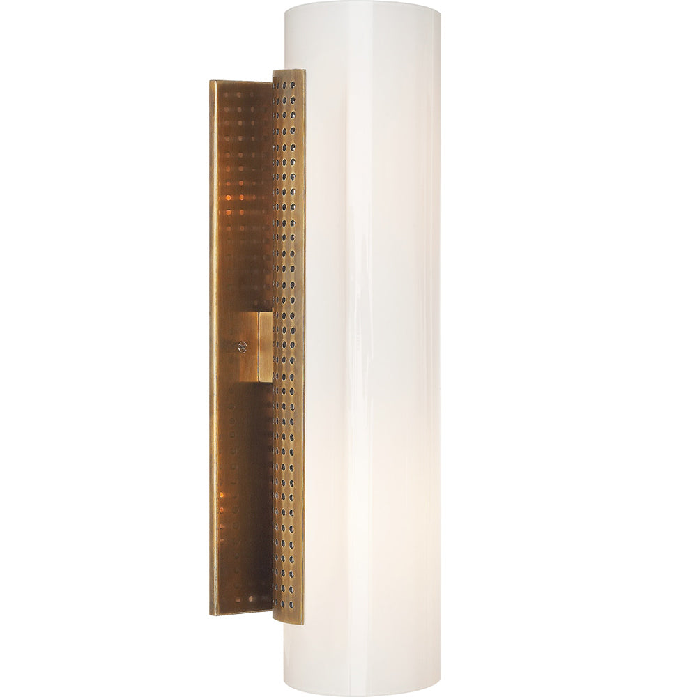 A perfect bathroom addition, the Precision Cylinder Sconce by Kelly Wearstler, is streamlined, with the glass diffuser hugged by the perforated backplate.Precision Cylinder Sconce by Kelly Wearstler modern wall sconce features unique design sure to enhance your home.The modern wall sconce works perfectly in movies or theater rooms as well.