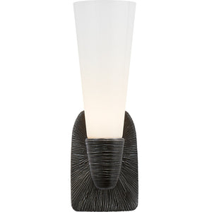A cool, contemporary design with an industrial feel, this charming Utopia Small Single Bath Sconce by Kelly Wearstler lends curated appeal to your aesthetic.For a perfect finishing touch, install one of these sconces on each side of the mirror to illuminate the scene in an ambient glow.Utopia Small Single Bath Sconce by Kelly Wearstler is perfect with any decor,this fixture adds a sparkle to any space.