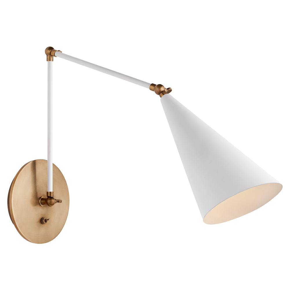 Inspired by Mid-Century Modern design, this movable sconce allows you to angle the sleek, conical shade to focus light where you need it most. Attached to a brass circular wall plate, it works particularly well in a hallway, home study, or living room.