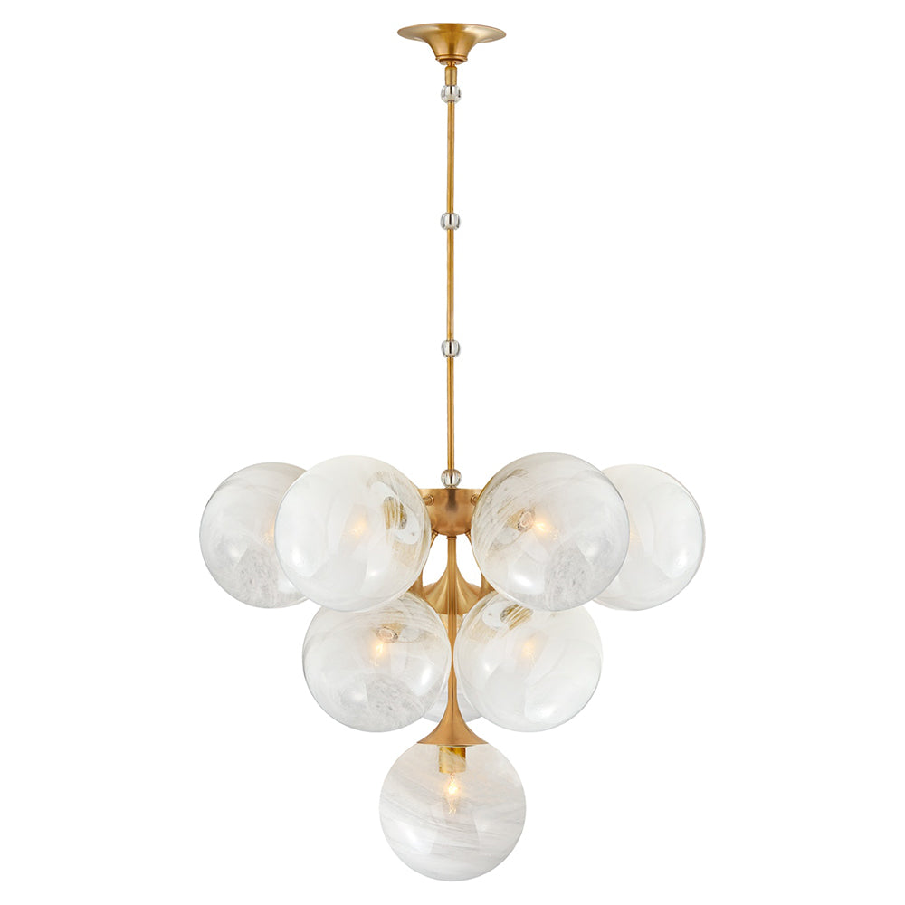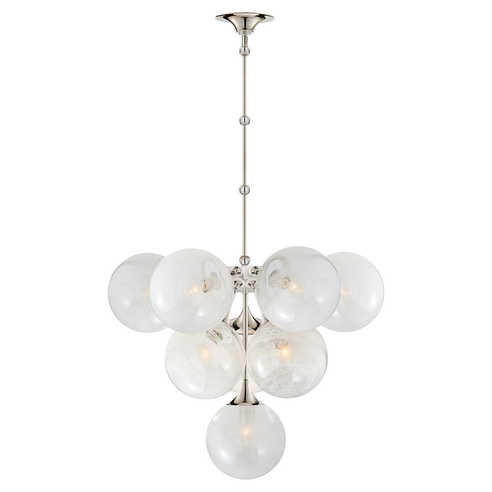 The Cristol Pendant brings old world glamour and a contemporary spin to an interior. Ideal for larger rooms, this piece illuminates every corner from its three tiers of globe lighting.This 10 light Tiered Chandelier from the AERIN Cristol collection will enhance your home with a perfect mix of form and function.