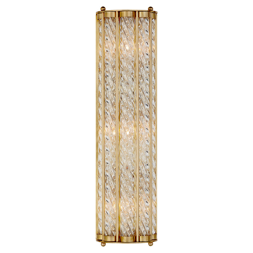 This classic sconce brings deco style wherever it is placed. The column design with spiral glasswork has a sparkling quality. It is an elegant addition to a hallway to create a warm, welcoming glow.