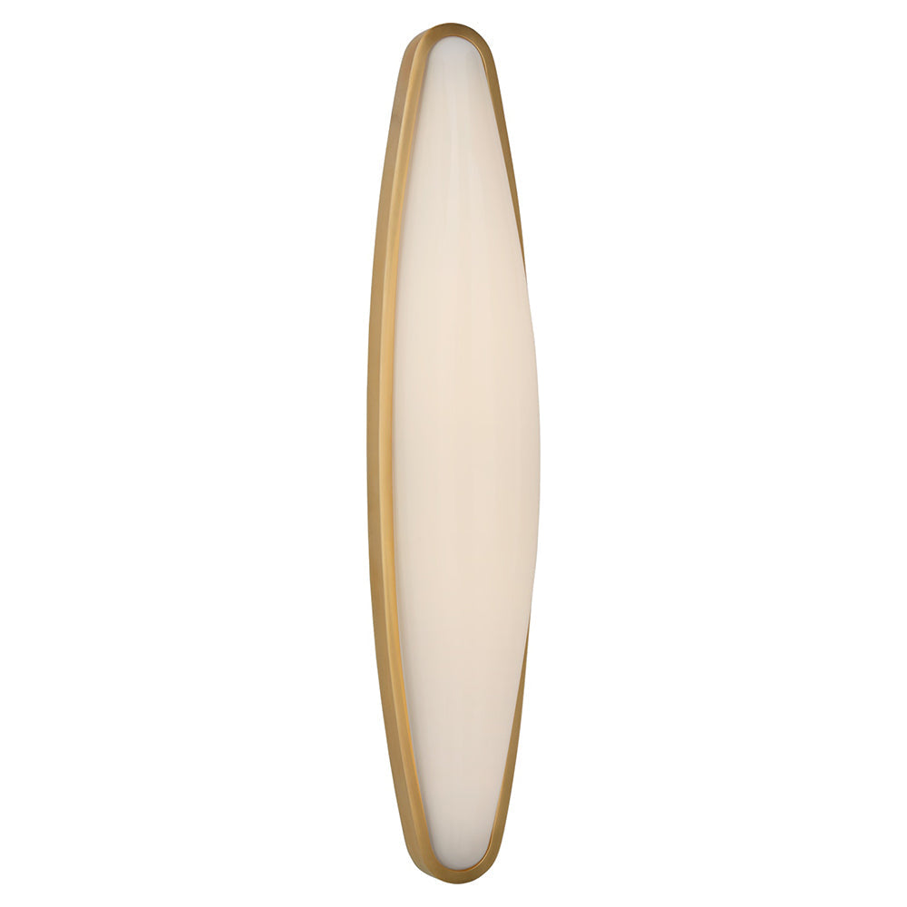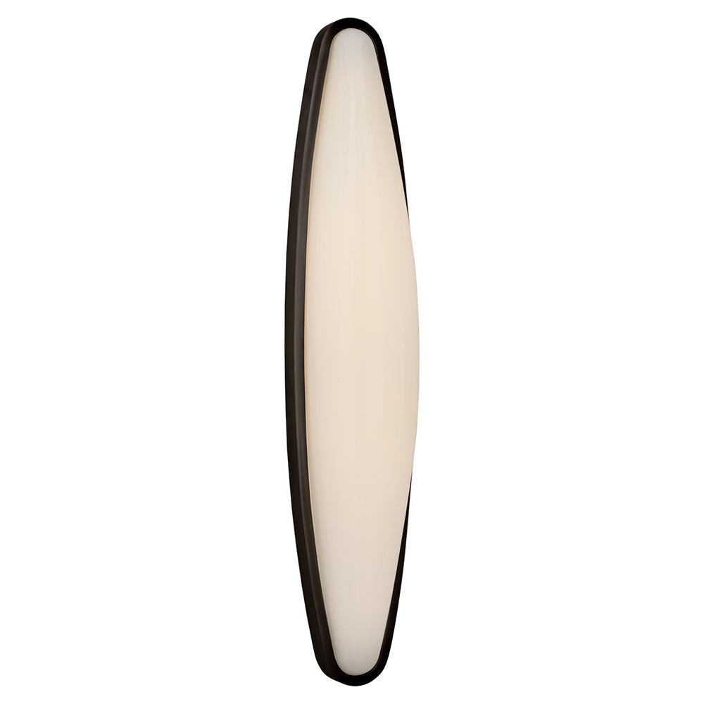 This elongated sconce brings a stylish look to a narrow space in a bathroom. Set in a minimal metal frame, its white glass provides a soft glow. Inspired by Art Deco lighting, it represents classic design at its best.