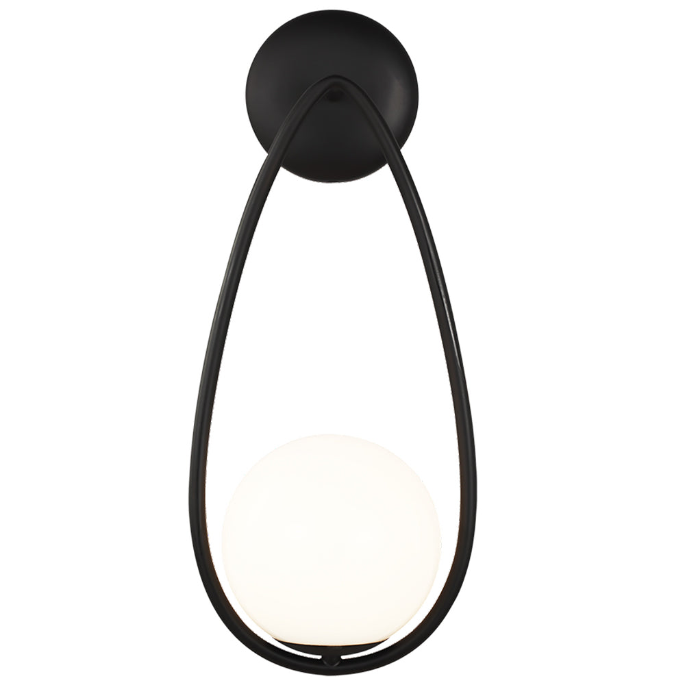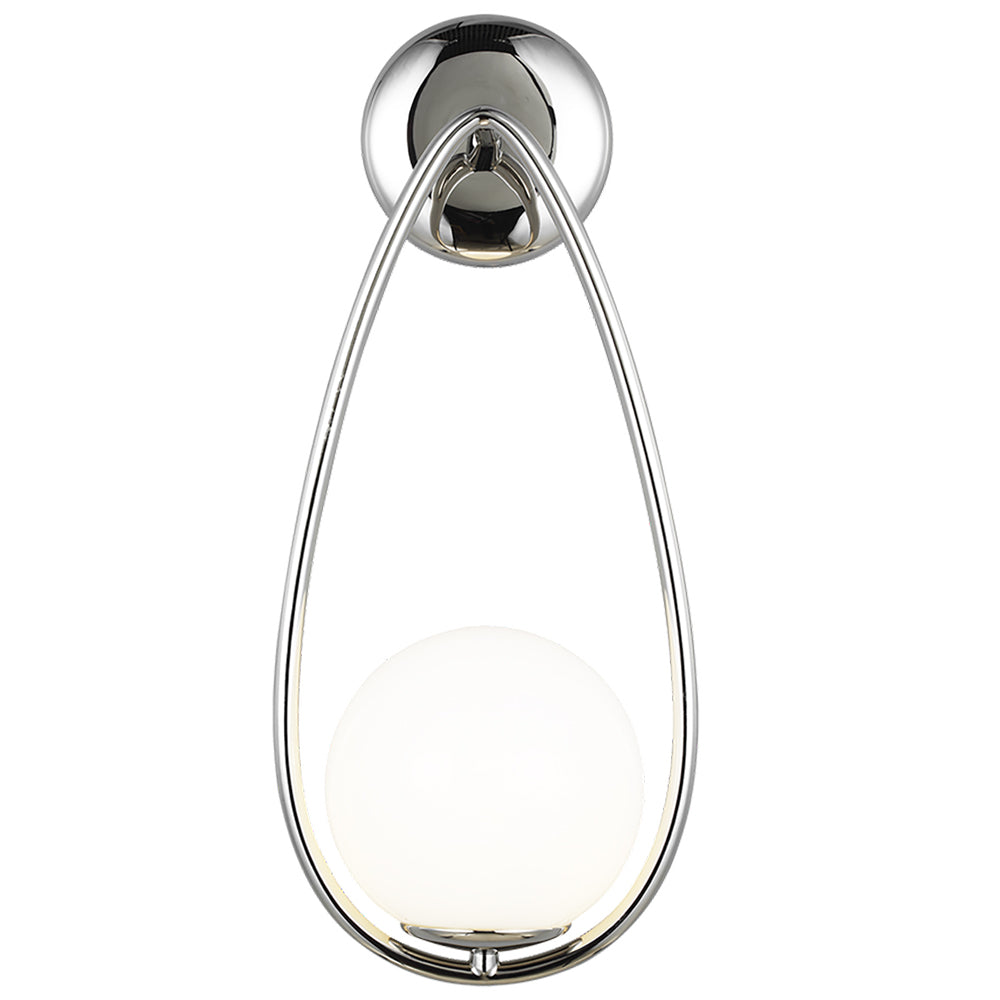 The Aerin collection for Decor House Furniture, expands the Aerin luxury lifestyle brand. This curated collection channels classic midcentury style, with a modern point of view. The collection supports the Aerin philosophy that living beautifully should be effortless. Discover this modern Aerin Galassia One Light Sconce available in Midnight Black,Polished Nickel and Burnished Brass finishes.The Galassia One Light Sconce perfectly balances a glass globe and curving teardrop frame, giving it a contemporary look. The white glass casts a soft, welcoming glow over a space. This piece works particularly well in a hallway. This breathtaking Aerin Galassia One Light Sconce fixture is a must-have for illuminating any bath and vanity set in urban industrial, rustic, mid-century modern, transitional, traditional, farmhouse, or vintage electric interiors. Make your purchase today to begin your journey to a whole new lighting experience.