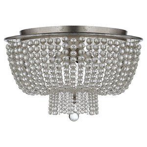 Inspired by 1920s design, this elegant light strung with beading is a beautiful addition to bedrooms and dressing rooms.Set a tone of elegance for your favorite room with this incredibly stunning flash mount. Luxury is guaranteed with pearl-like beads that come in clear glass or white acrylic. The flush mounts charm is completed with burnished silver leaf or hand rubbed antique brass finishes at the base.