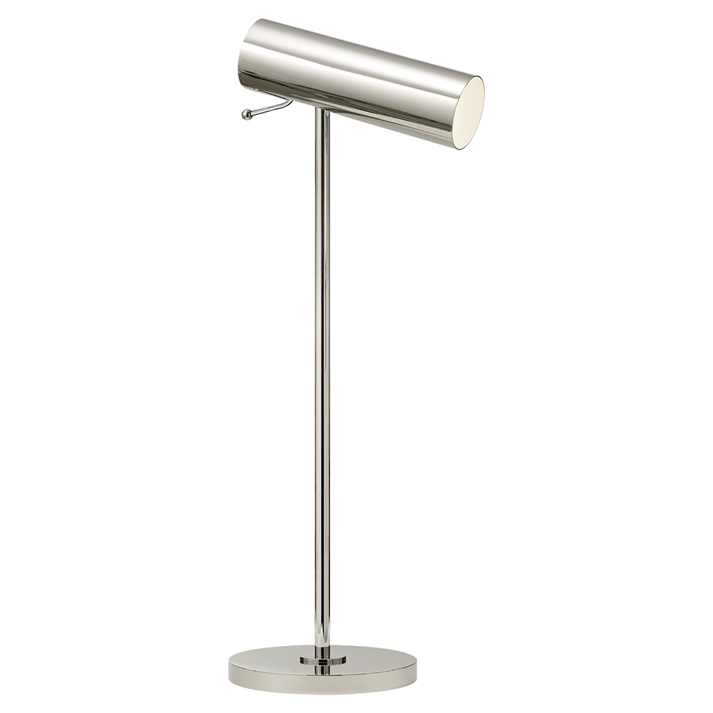 Add style and retro appeal to a desk or table with this pivoting lamp. The sleek lines and cylindrical metallic shade show minimalist design at its best. An excellent task lamp, the movable shade allows you to concentrate light wherever it is required.
