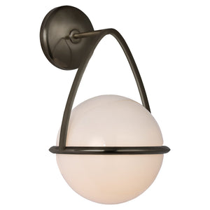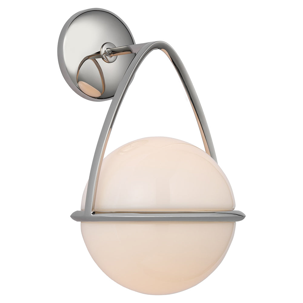 Originally inspired by Modernist modular design, the Lisette sconce has been simplified, giving it a contemporary appeal. Suspended from a stylish frame of abstract curves, the white glass globe casts a soft glow over a room. It works particularly well where a subtle, welcoming light is required, such as in a hallway.